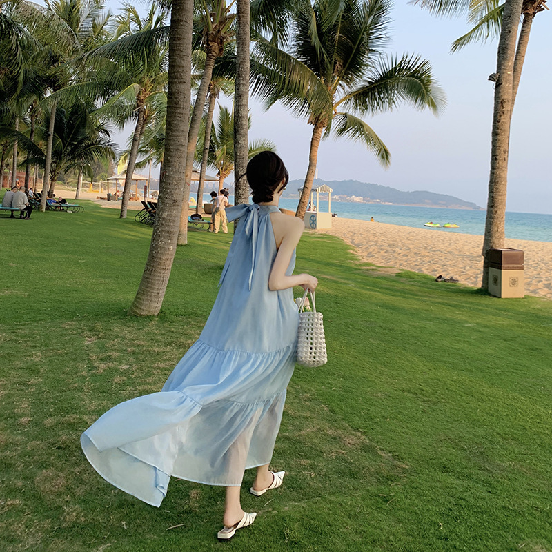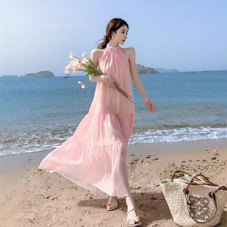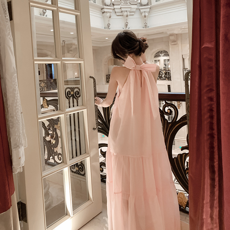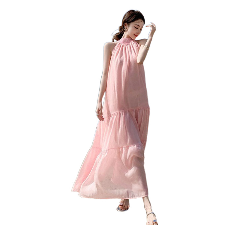西双版纳度假粉色无袖连衣裙韩版宽松显瘦年新款气质温柔裙子