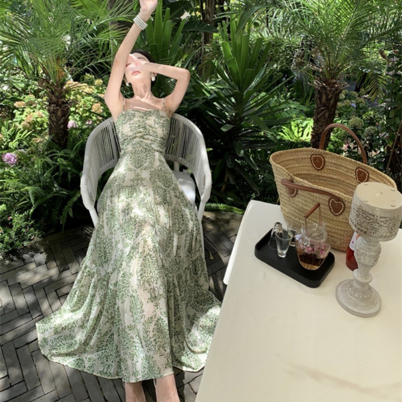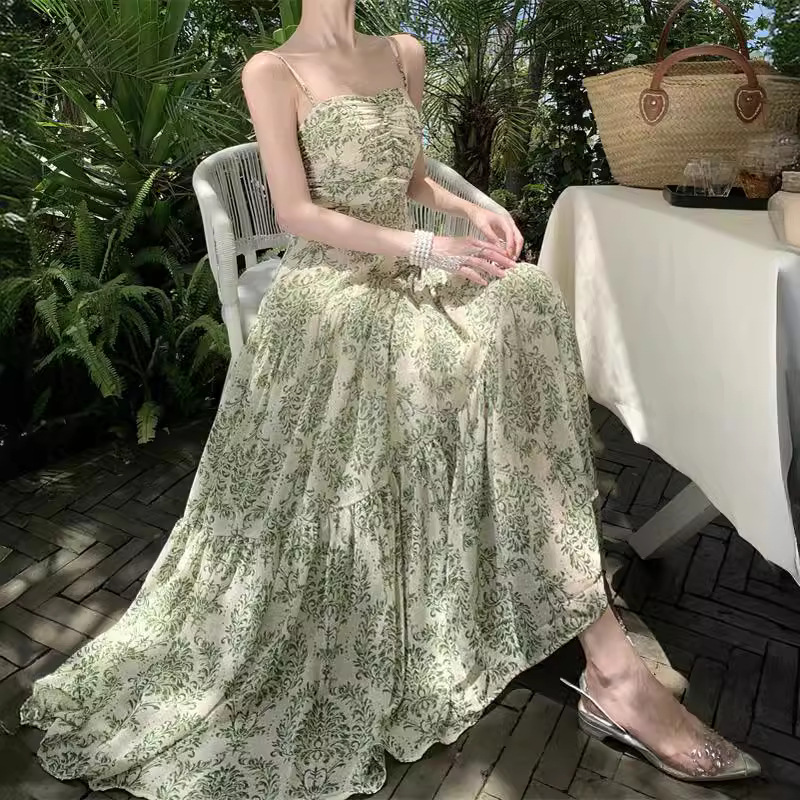 甜美海边度假裙茶歇碎花吊带连衣裙女收腰显瘦气质高级感长裙子夏