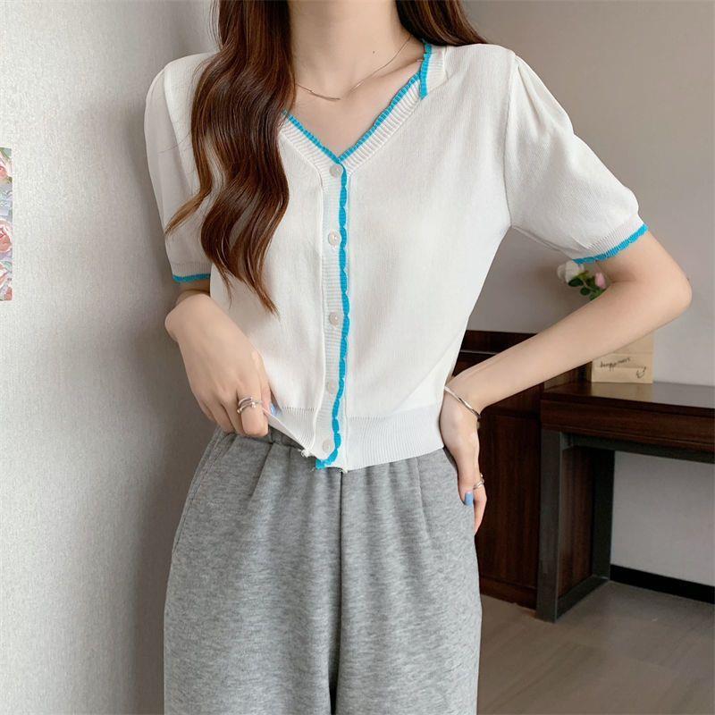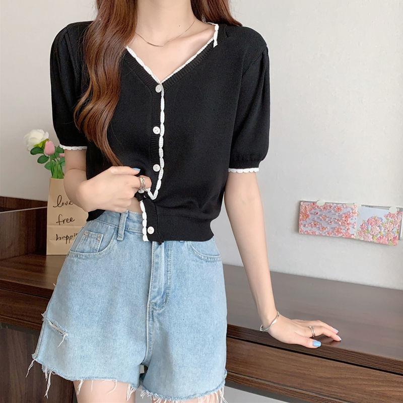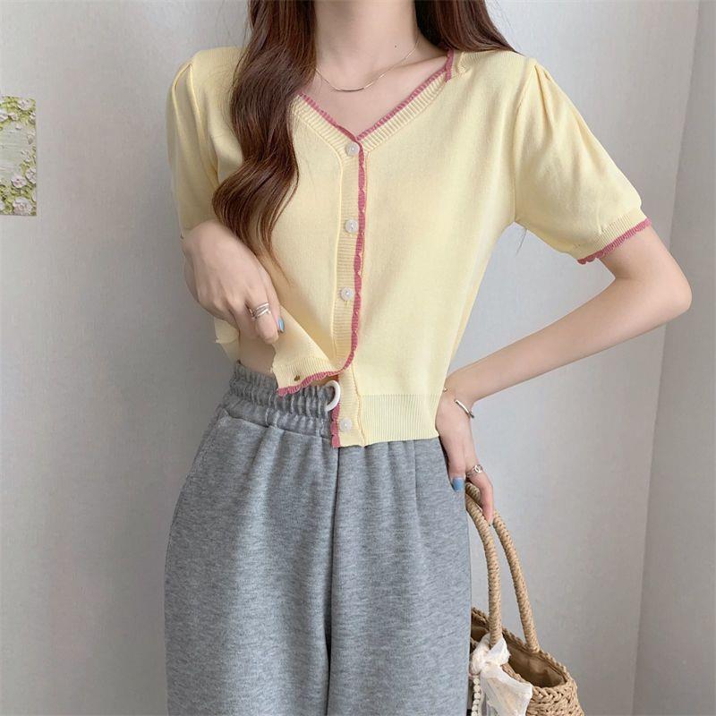 撞色圆领短袖t恤女新款夏季打底衫韩版修身短款学生上衣潮