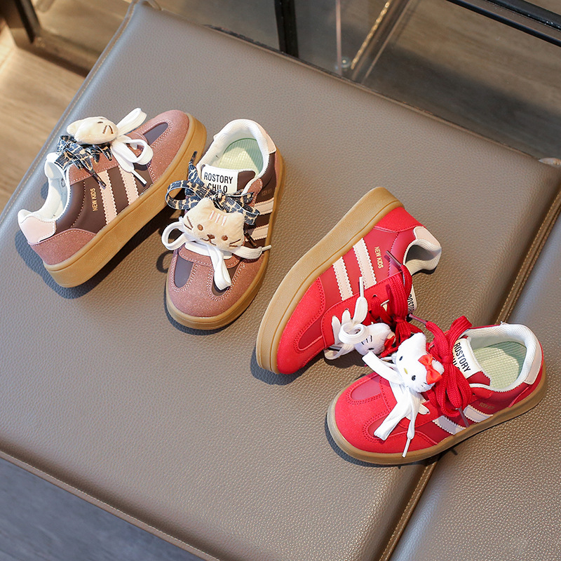 儿童板鞋2025年春季新款女童可爱卡通德训鞋中大童红色皮面休闲鞋