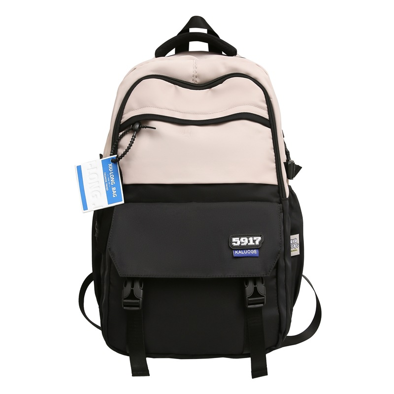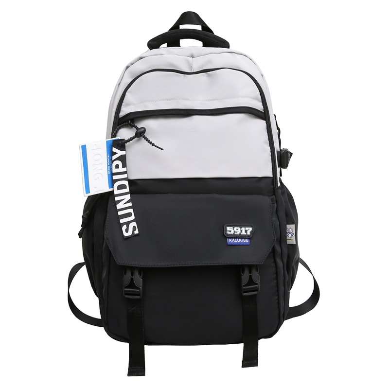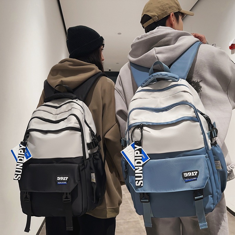秀龙学院风中学生书包女新款撞色拼接电脑背包街头潮流男生双肩包