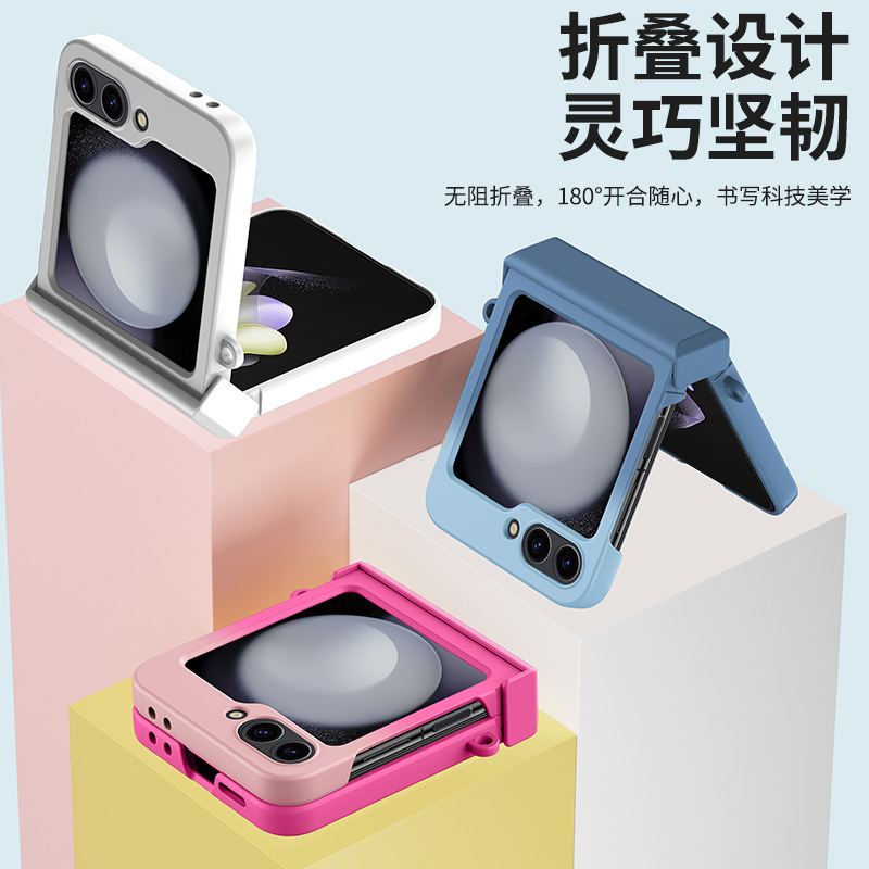 适用三星ZFLIP6保护套双色W25flip手机壳双色肤感壳带双扣铰链款