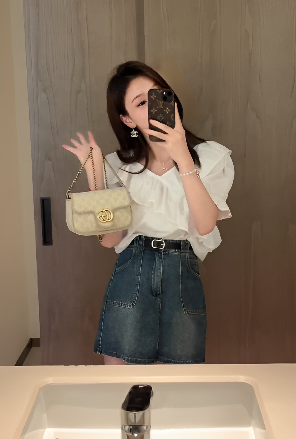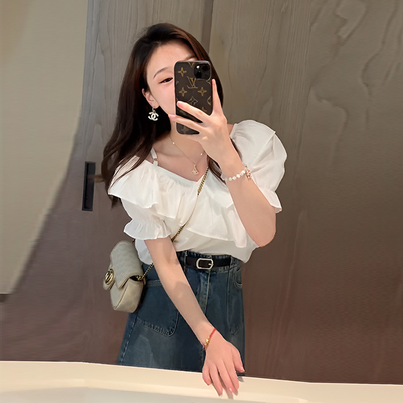白色【别致显瘦/辣妹甜辣甜飒风/独特设计/今年流行/小清新清纯甜美/又a又飒/茶里茶气/气质小衫】
