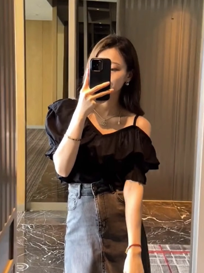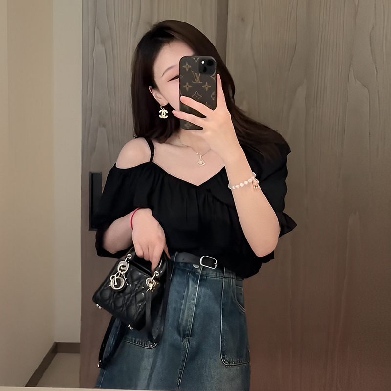黑色【别致显瘦/辣妹甜辣甜飒风/独特设计/今年流行/小清新清纯甜美/又a又飒/茶里茶气/气质小衫】