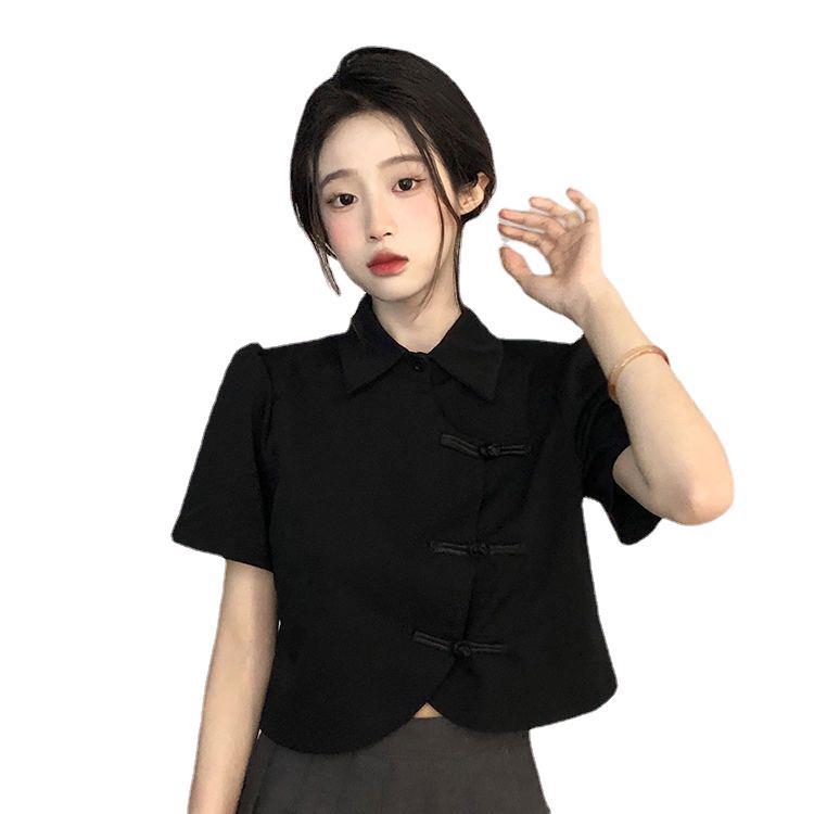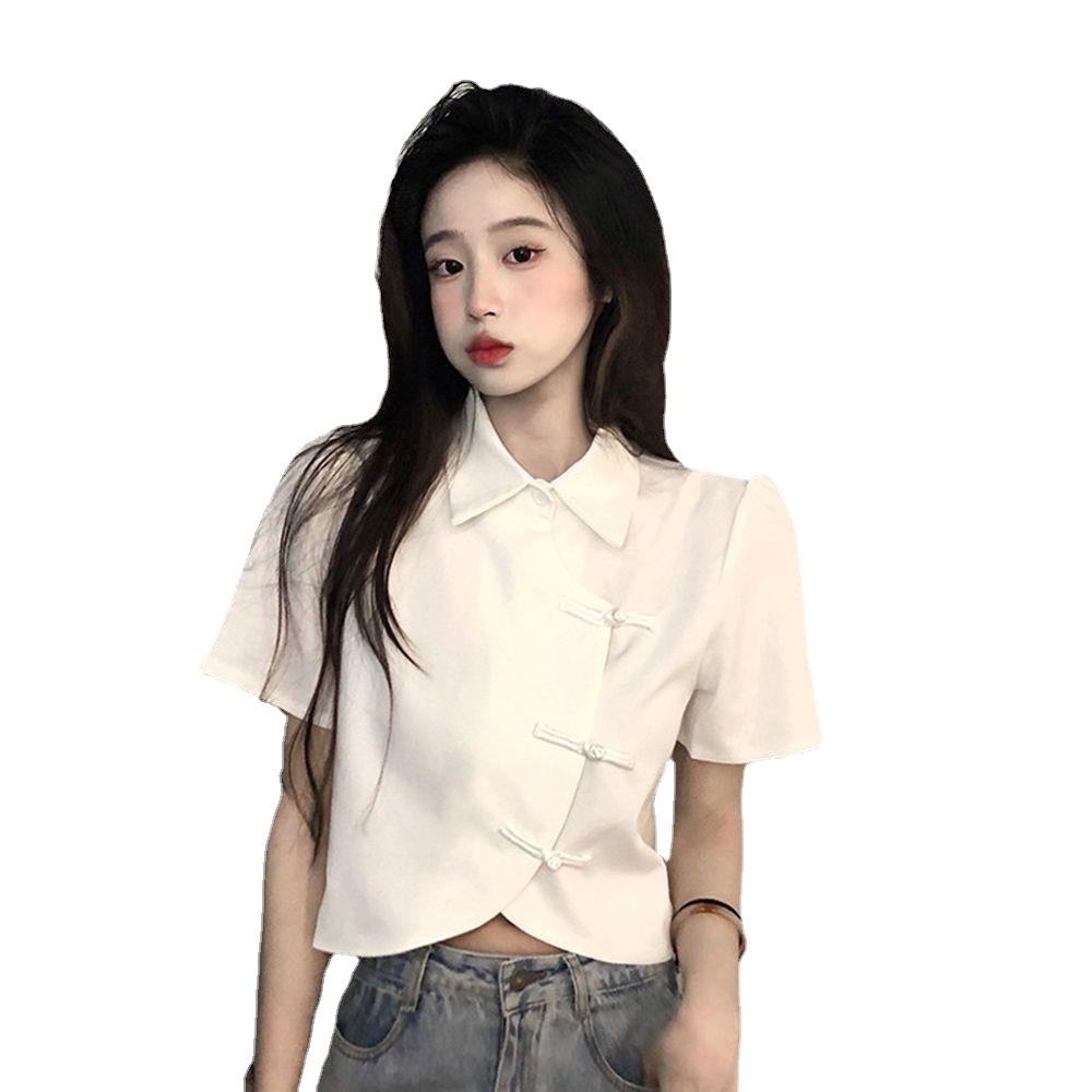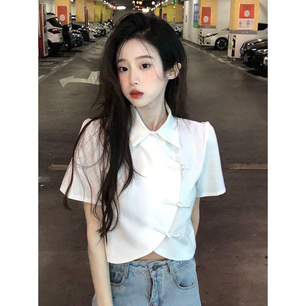新中式改良版旗袍短款上衣夏季女装新款不规则法式短袖衬衫