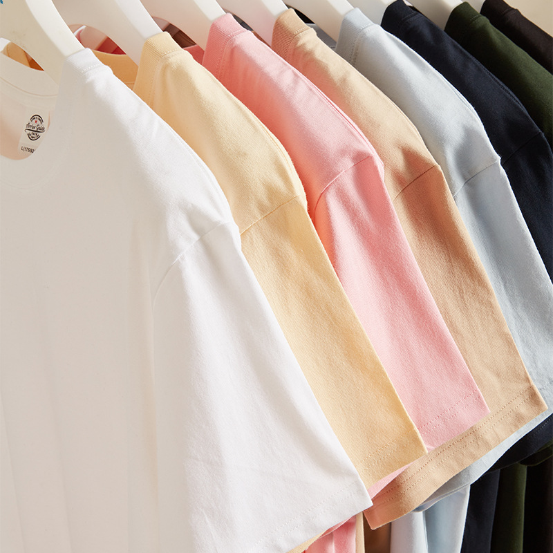 AG2302 精紧赛全棉230g重磅纯色圆领短袖空白衫宽松休闲t恤打底衫