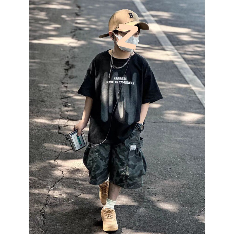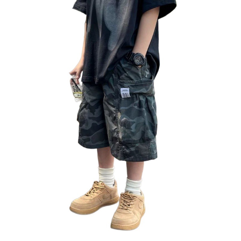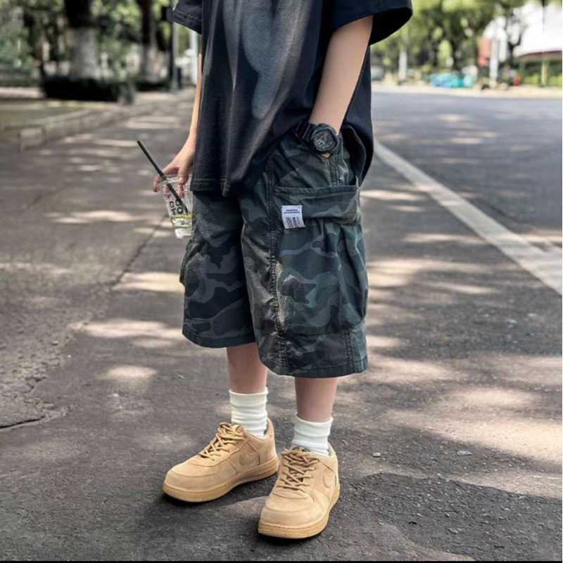 男童裤子夏装新款短裤迷彩工装裤潮牌炸街大童痞帅五分裤中裤