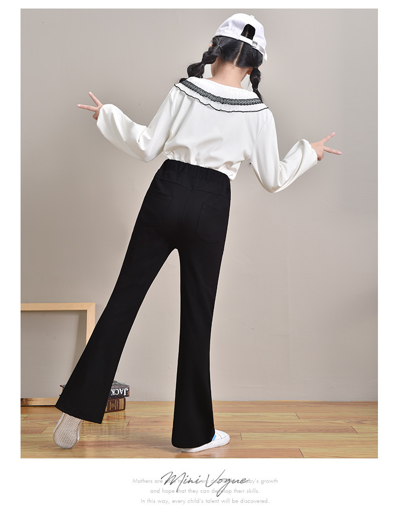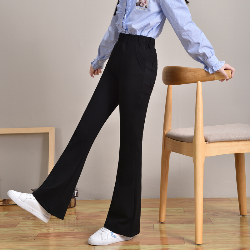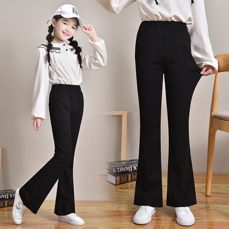 女童裤子春秋外穿新款时尚儿童大童洋气黑色喇叭裤儿童长裤潮