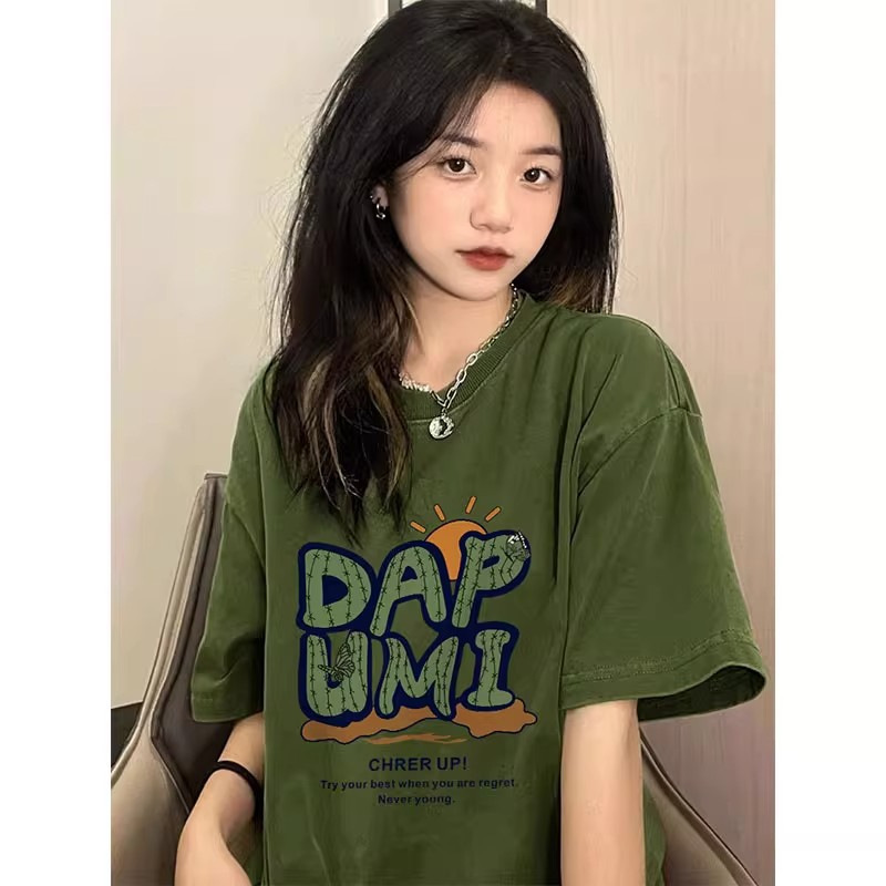 纯棉美式复古短袖t恤女新款夏季宽松慵懒风港味chic半袖上衣