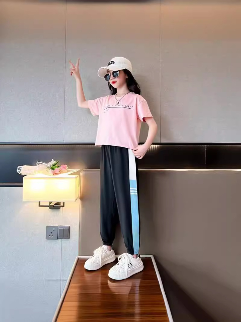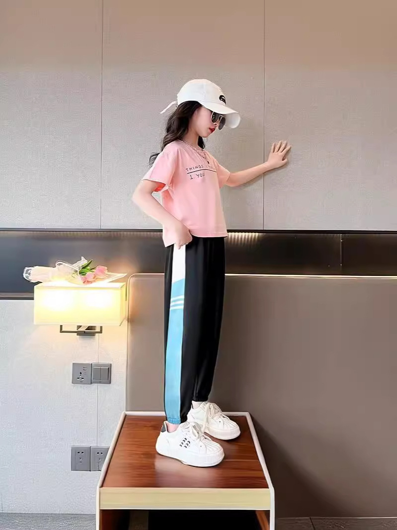 女童速干裤子夏季薄款冰丝外穿洋气宽松空调防蚊裤大童儿童运动裤