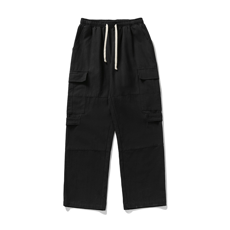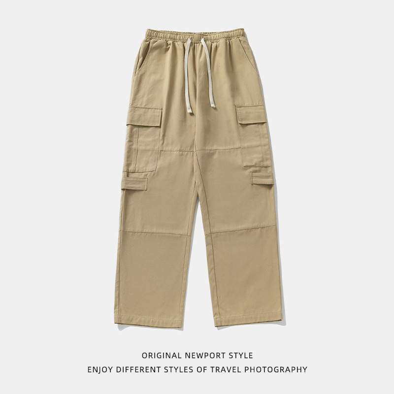 复古工装直筒裤秋季新款男装休闲户外拼接设计纯棉宽松潮牌长裤子