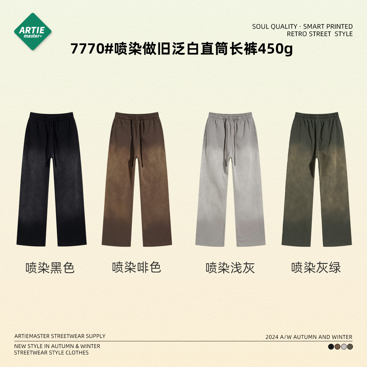 秋季美式潮牌450g喷染做旧男长裤抽绳复古洗水休闲宽松男卫裤
