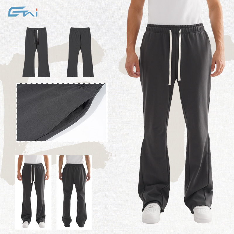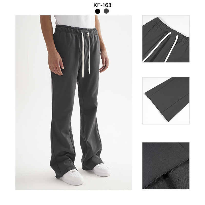 ETAI男装|高品质宽松休闲纯棉喇叭卫裤美式街潮散边抽绳喇叭裤