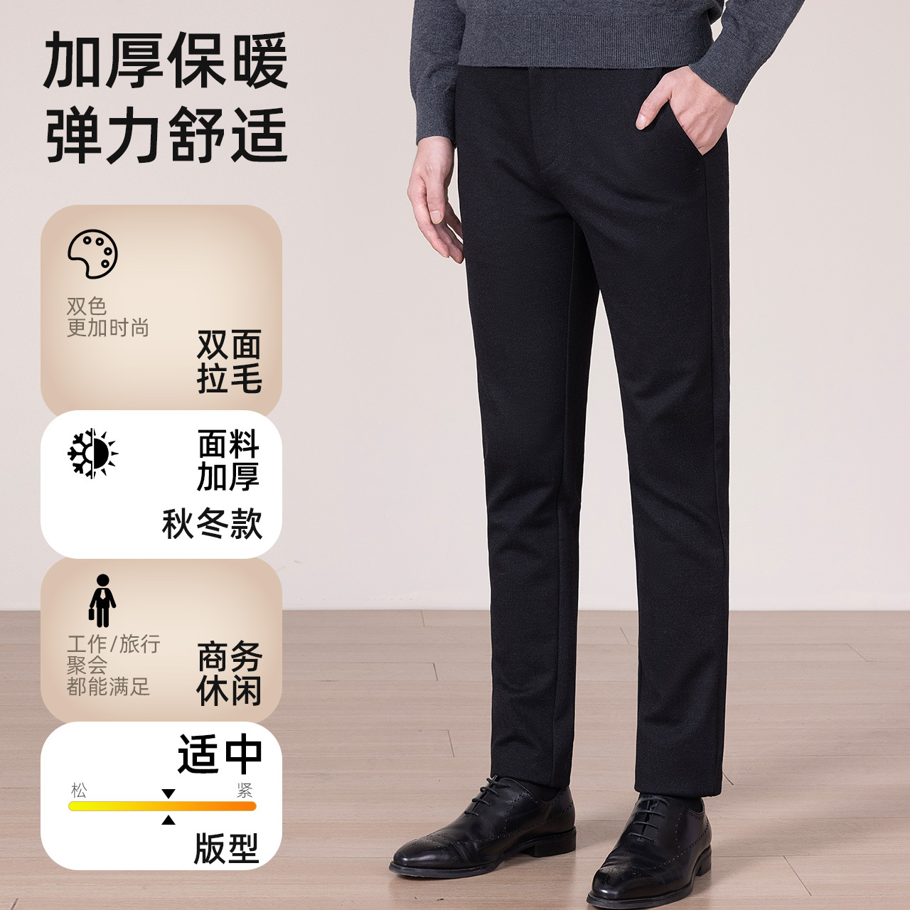 休闲裤男款秋冬季新款磨毛加厚加绒休闲西裤男士垂感直筒西装裤子
