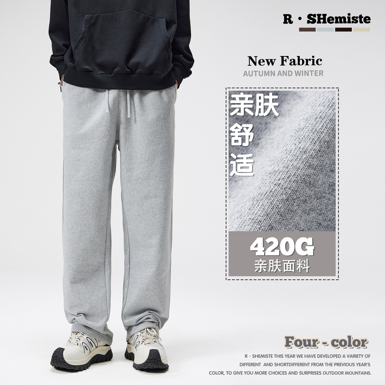 RS男装|420G重磅毛圈阔腿卫裤跨境欧美阔腿直筒裤宽松休闲裤子男