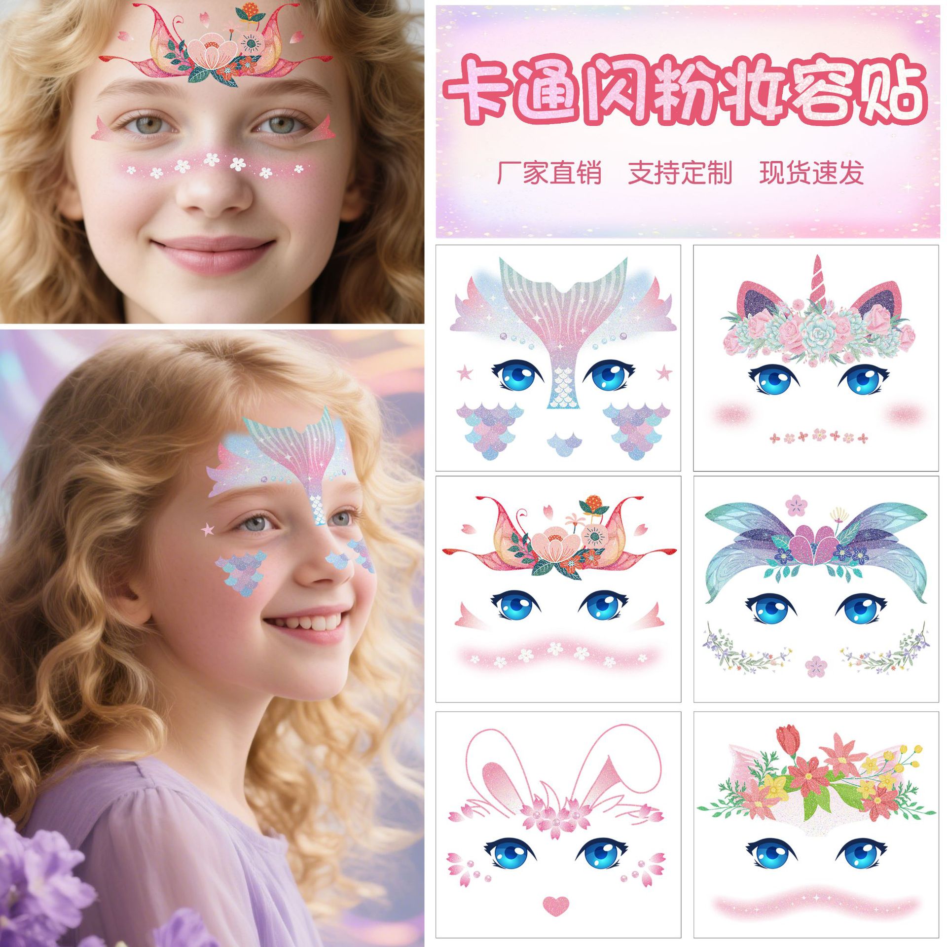 跨境新款动物面具脸贴六一儿童节表演演出卡通兔子蝴蝶妆容脸贴纸