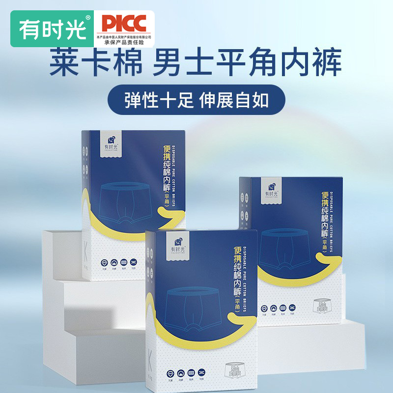 有时光一次性内裤旅行棉独立包装成人旅游免洗全棉短裤男士平角款