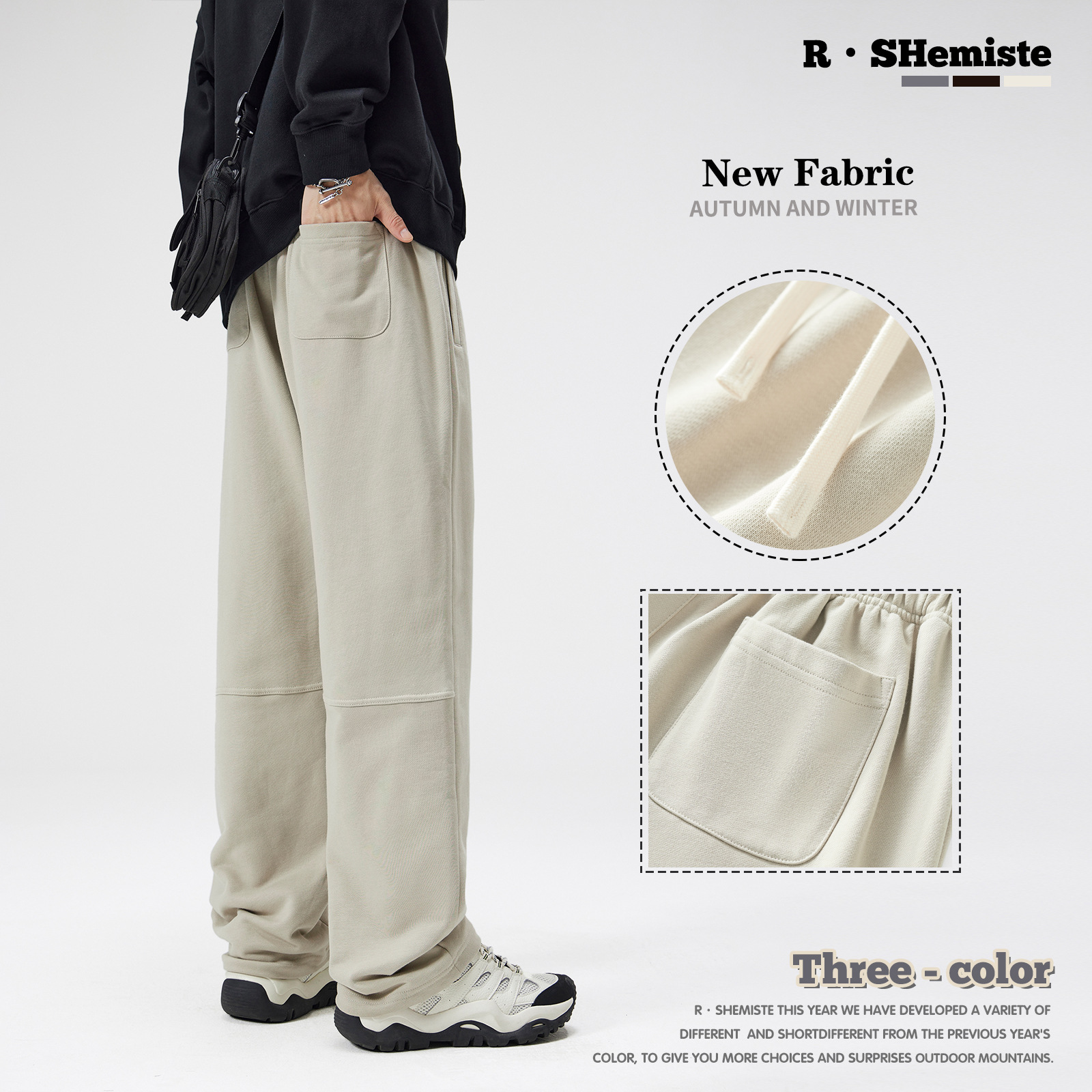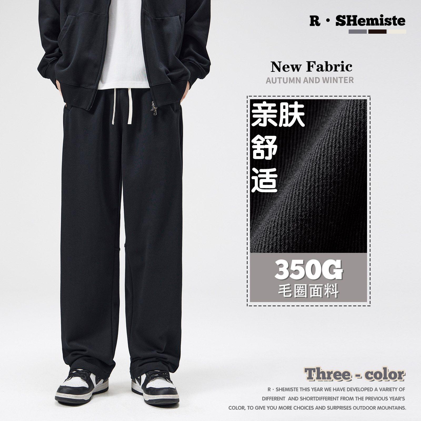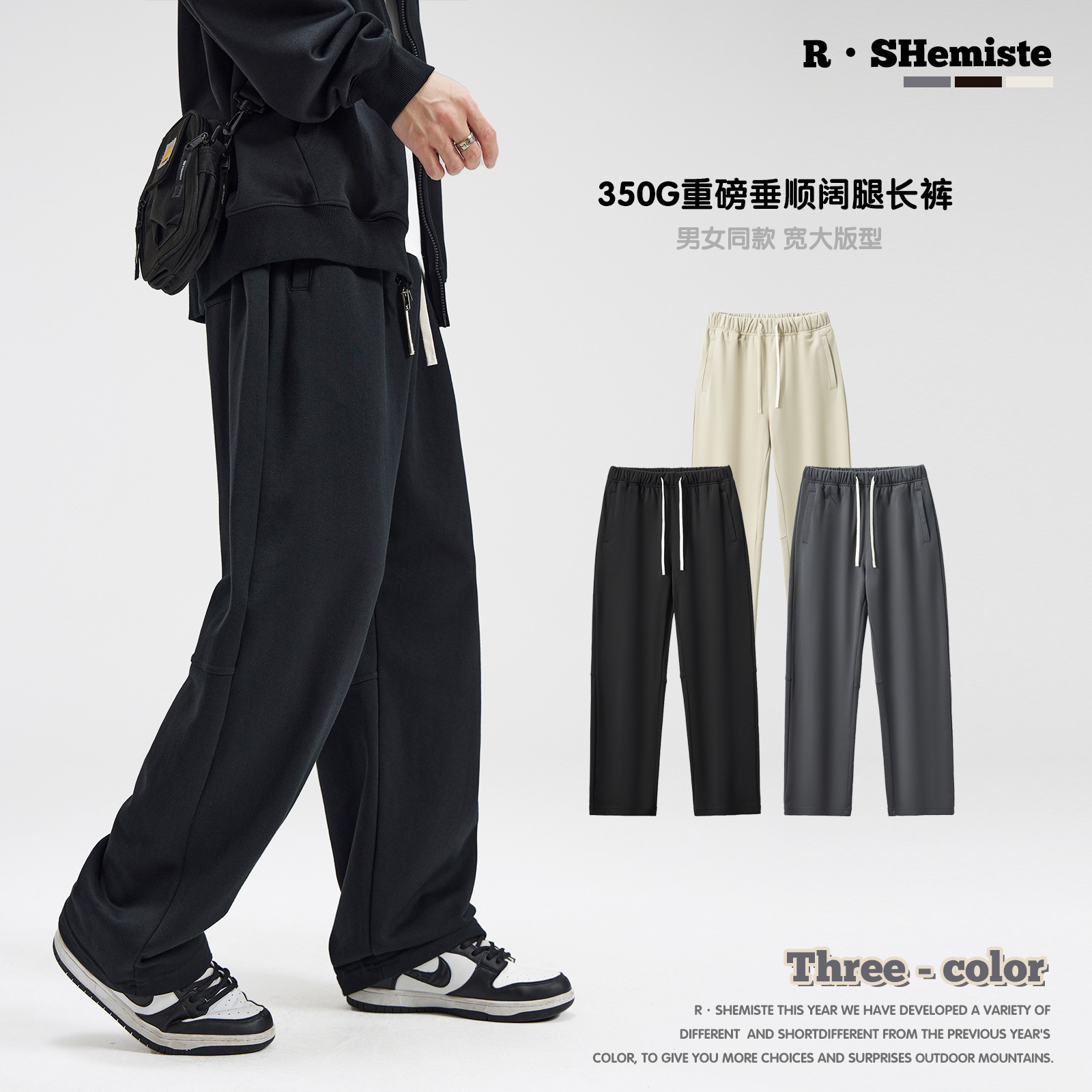 RS男装|新款350G重磅垂感阔腿休闲长裤跨境ins美式裤子男士秋季