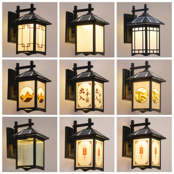 太阳能壁灯中式凉亭灯户外防水庭院灯别墅花园门柱复古阳台墙壁灯