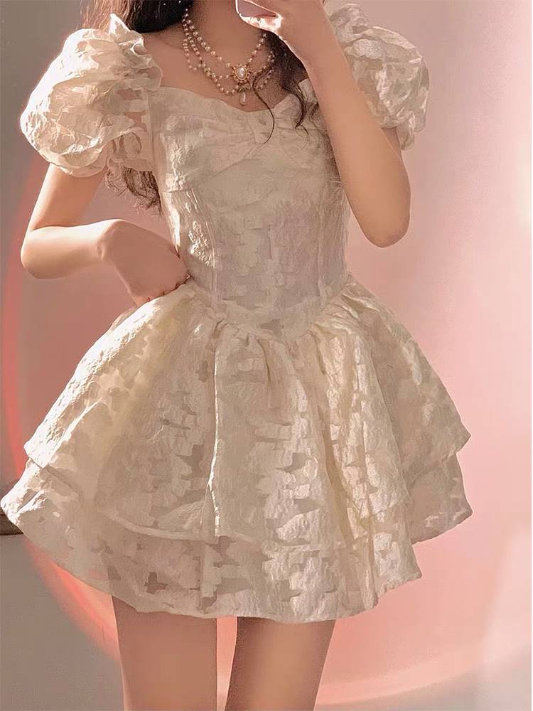甜辣风方领泡泡袖辣妹连衣裙女夏收腰显瘦艺术感裙子公主风蓬蓬裙