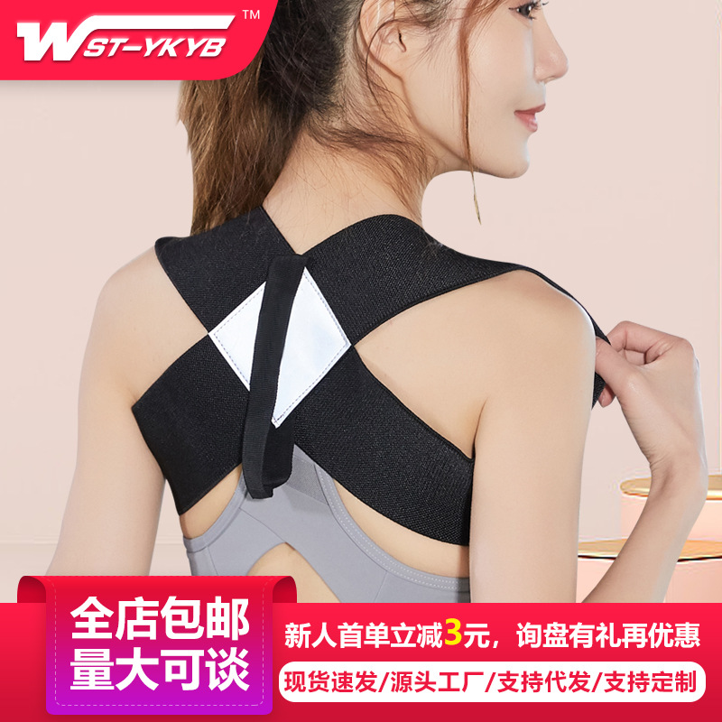 健身背部矫正带户外运动胸肌挺胸直背矫正带成人背部训练带沉肩带