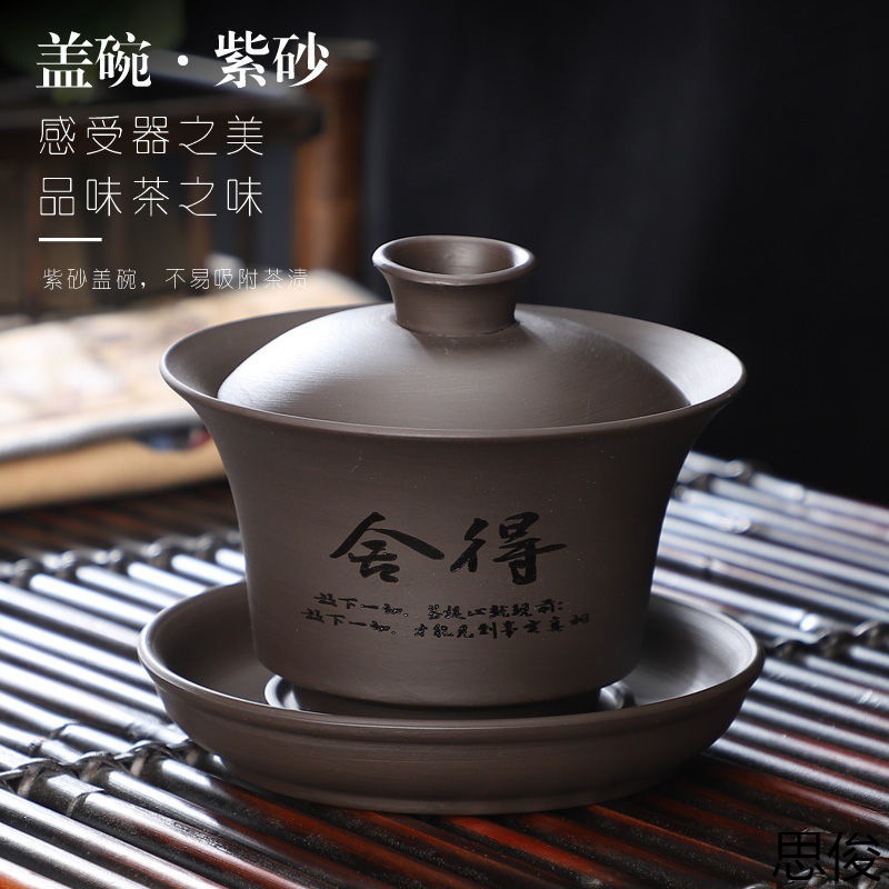 三才盖碗功夫茶具家用茶碗紫砂碗泡茶大号陶瓷盖碗套装带盖冲泡器