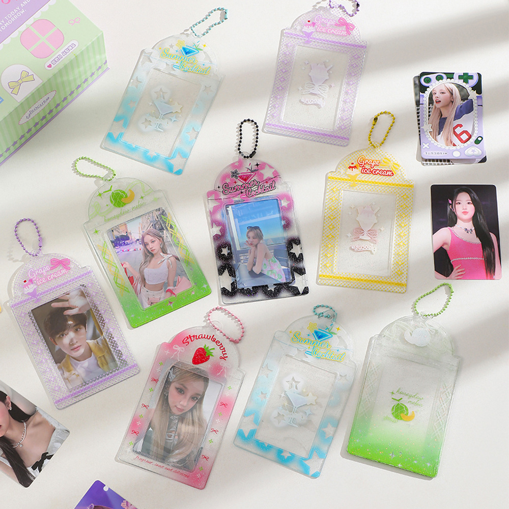 日韩透明散粉PVC卡套少女三寸拍立得卡片展示挂件证件钥匙扣卡包