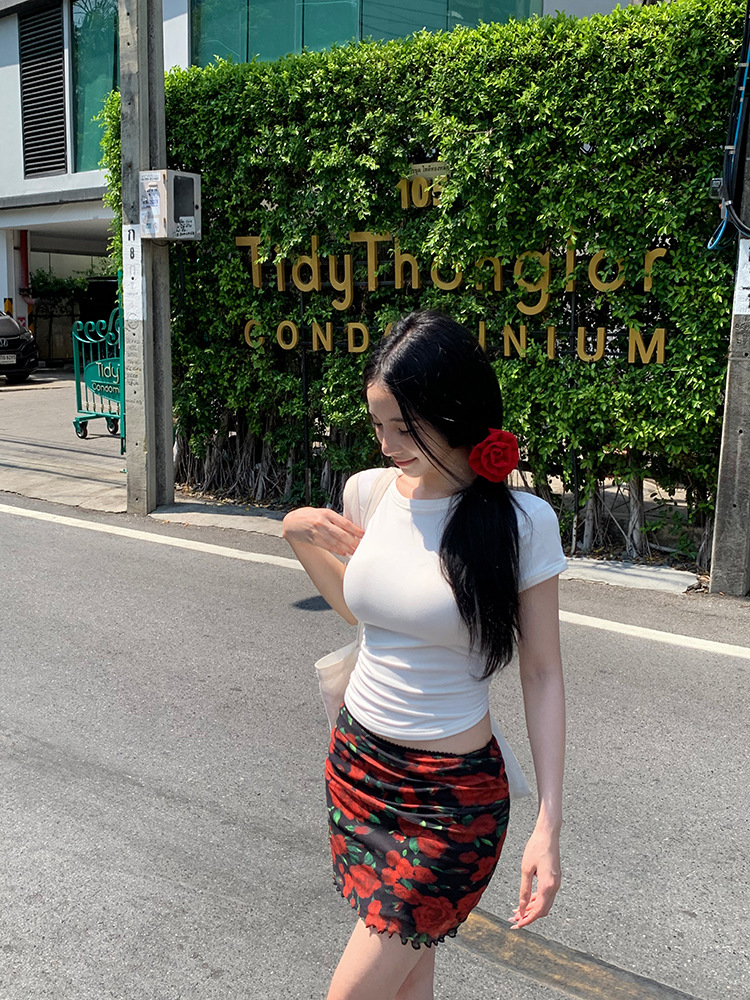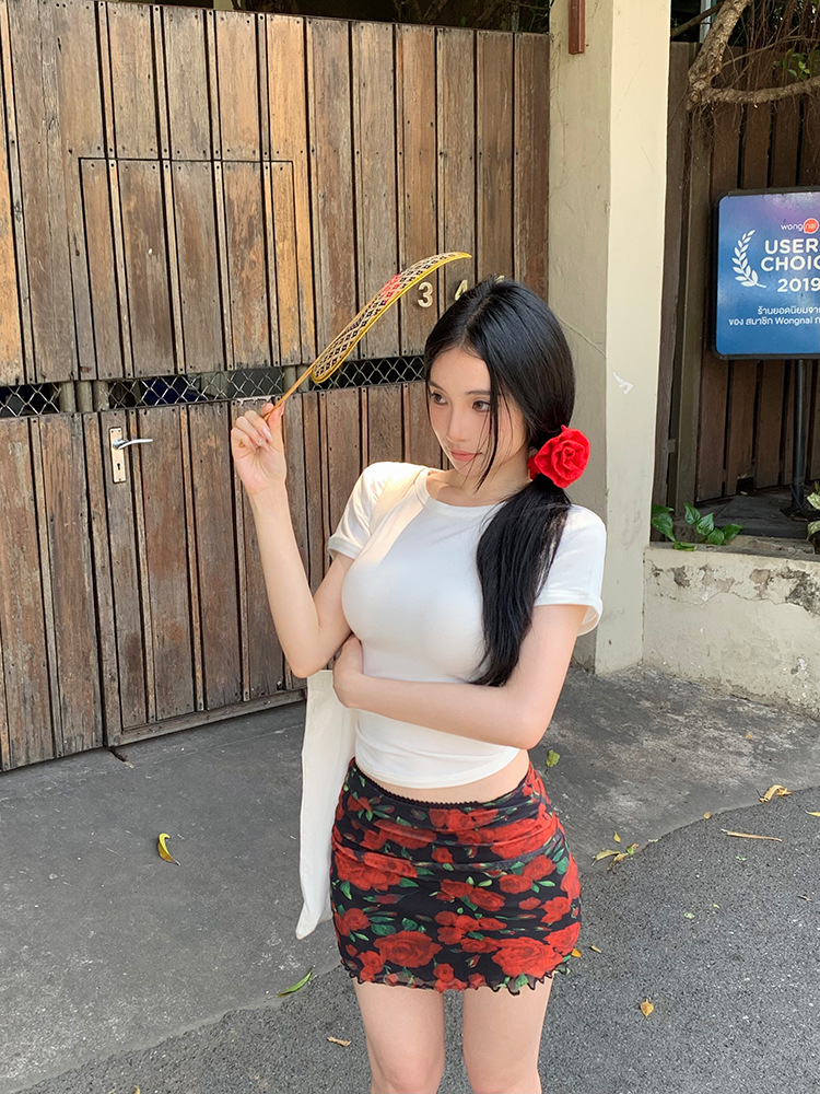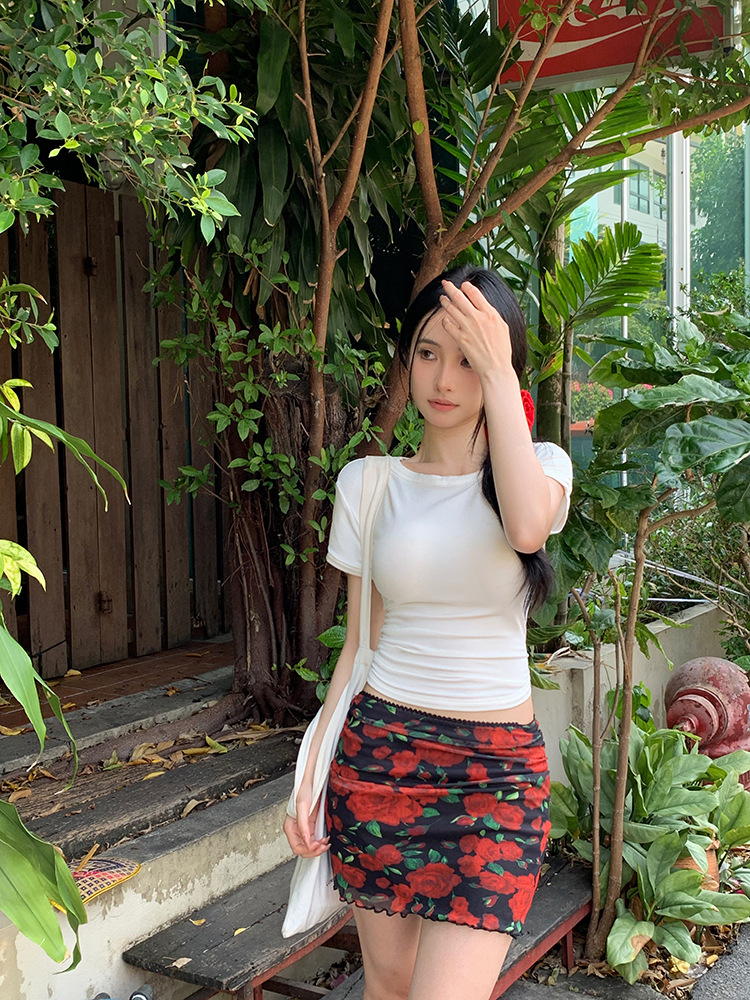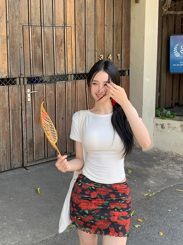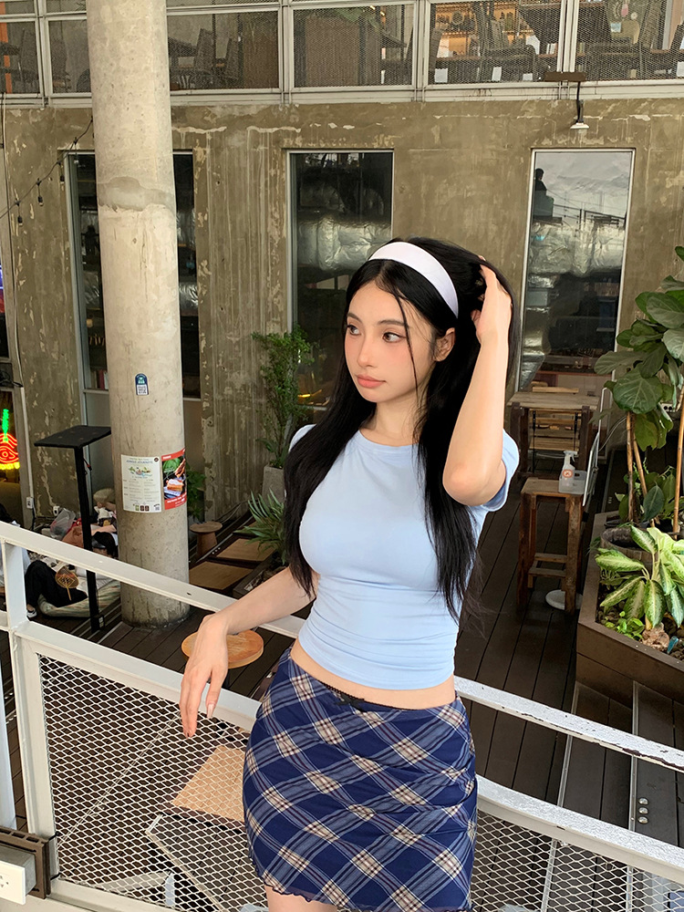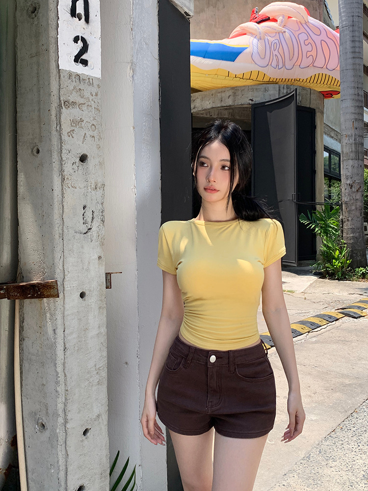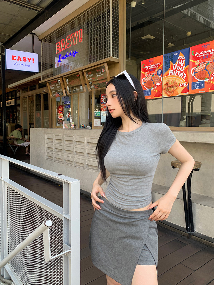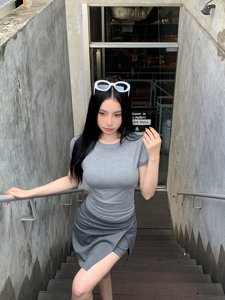 美式辣妹基础纯色修身显瘦正肩小圆领短袖T恤女上衣