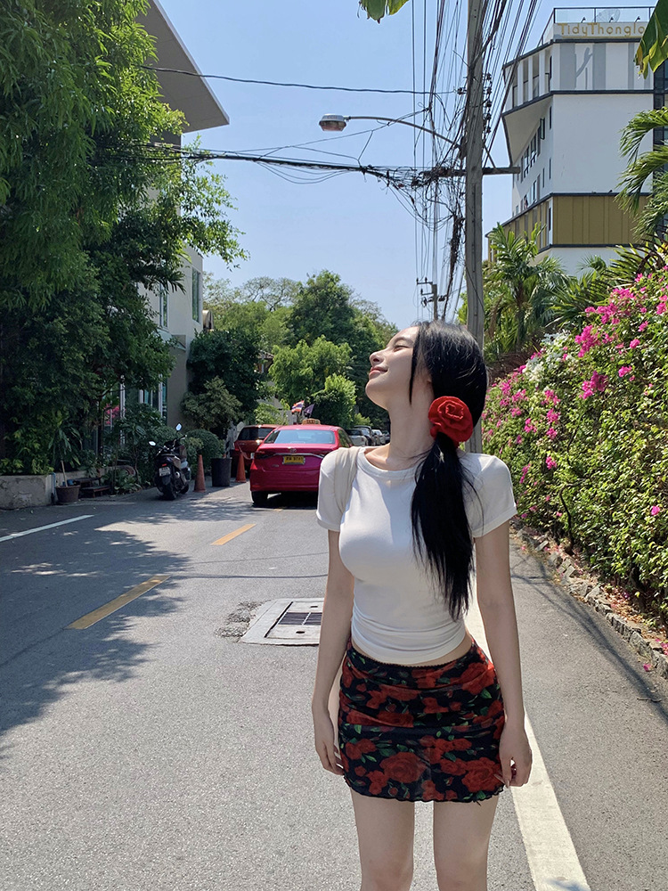 性感连体泳衣女韩国ins立体花朵纯色三角比基尼修身显瘦温泉泳装