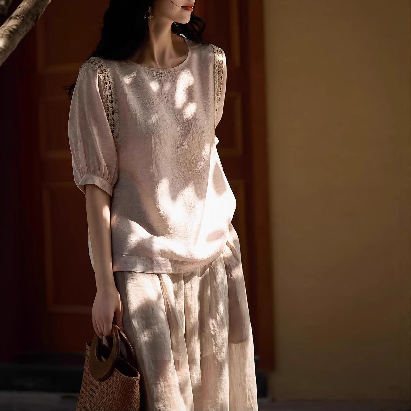 气质绝佳~2025年夏季新品女舒适透气感灯笼袖小衫