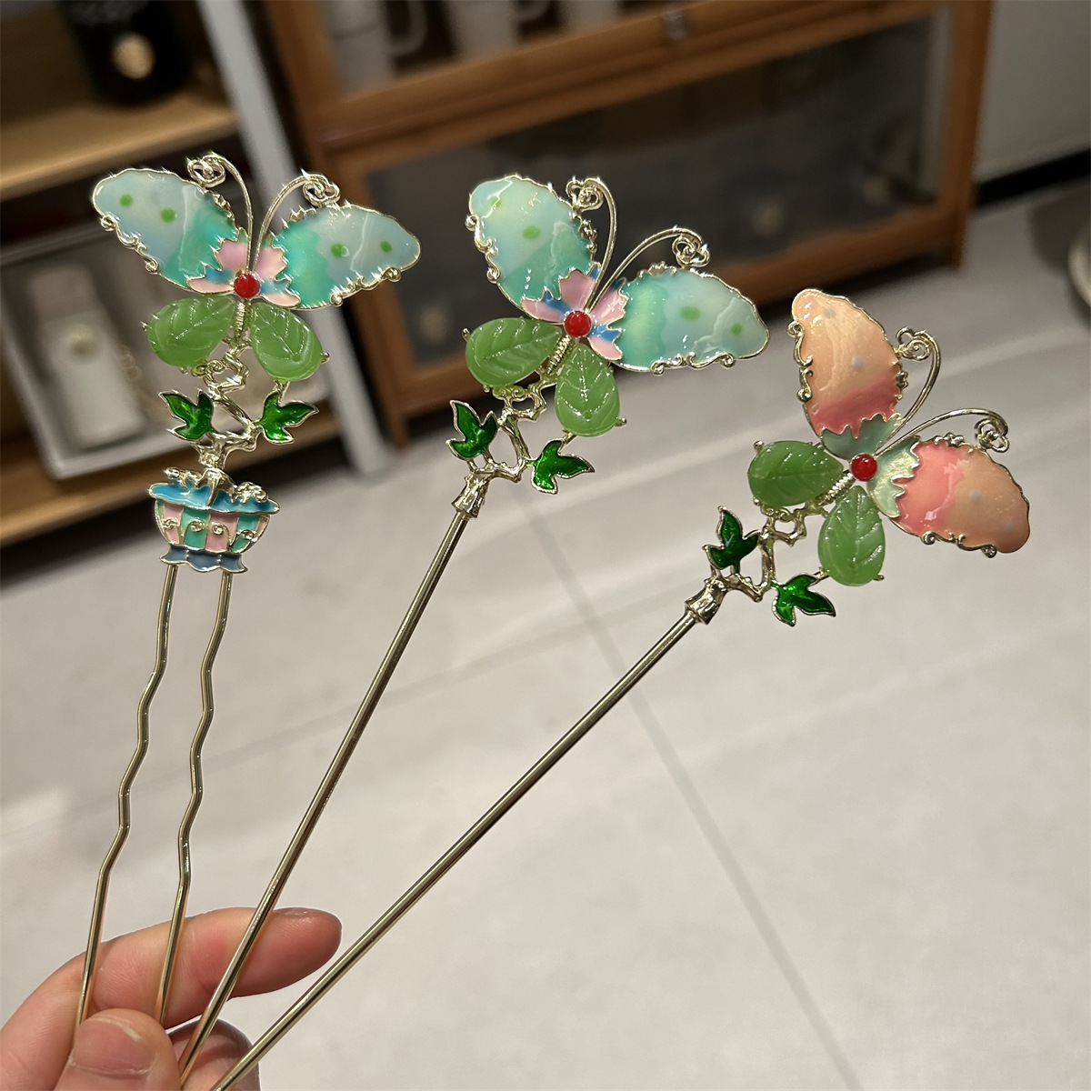 新中式古风画油蝴蝶U型发簪女时尚高级感时尚蝴蝶发钗