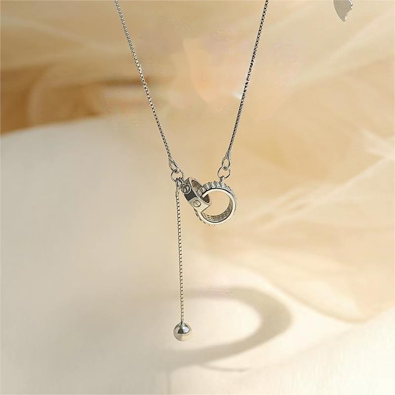 S925纯银双环项链女百搭气质韩版INS小众设计感轻奢项饰