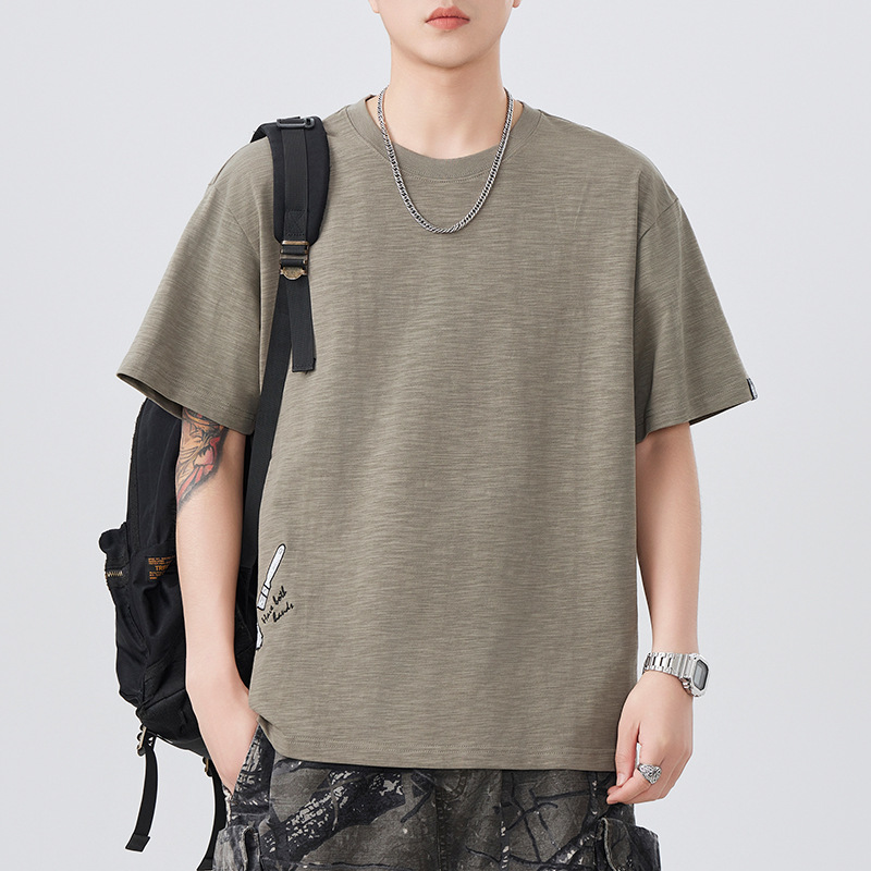 230g竹节棉短袖T恤男士高级感潮牌圆领上衣刺绣百搭简约男生短袖