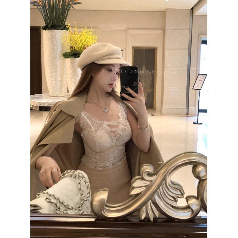 浪漫胸垫纯欲性感辣妹显瘦蕾丝吊带背心内搭上衣