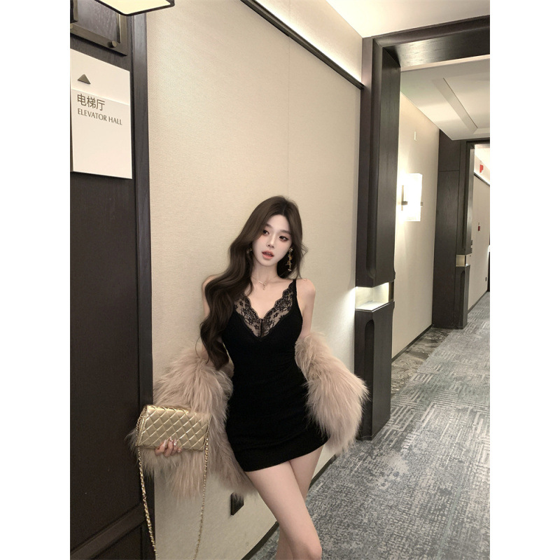 名媛性感黑色蕾丝吊带背心女弹力性感纯欲上衣