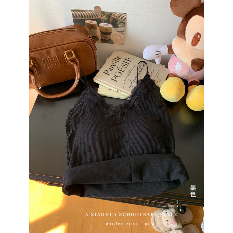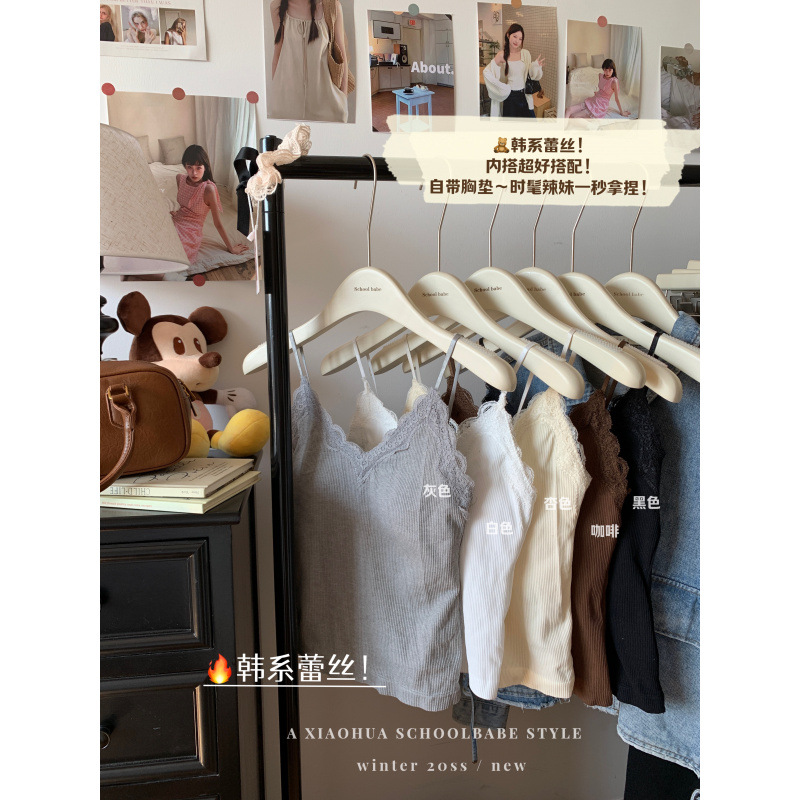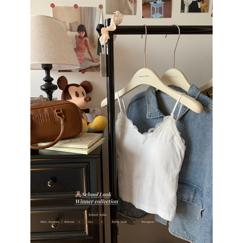 蕾丝拼接吊带背心内搭设计感性感外穿领无袖打底上衣
