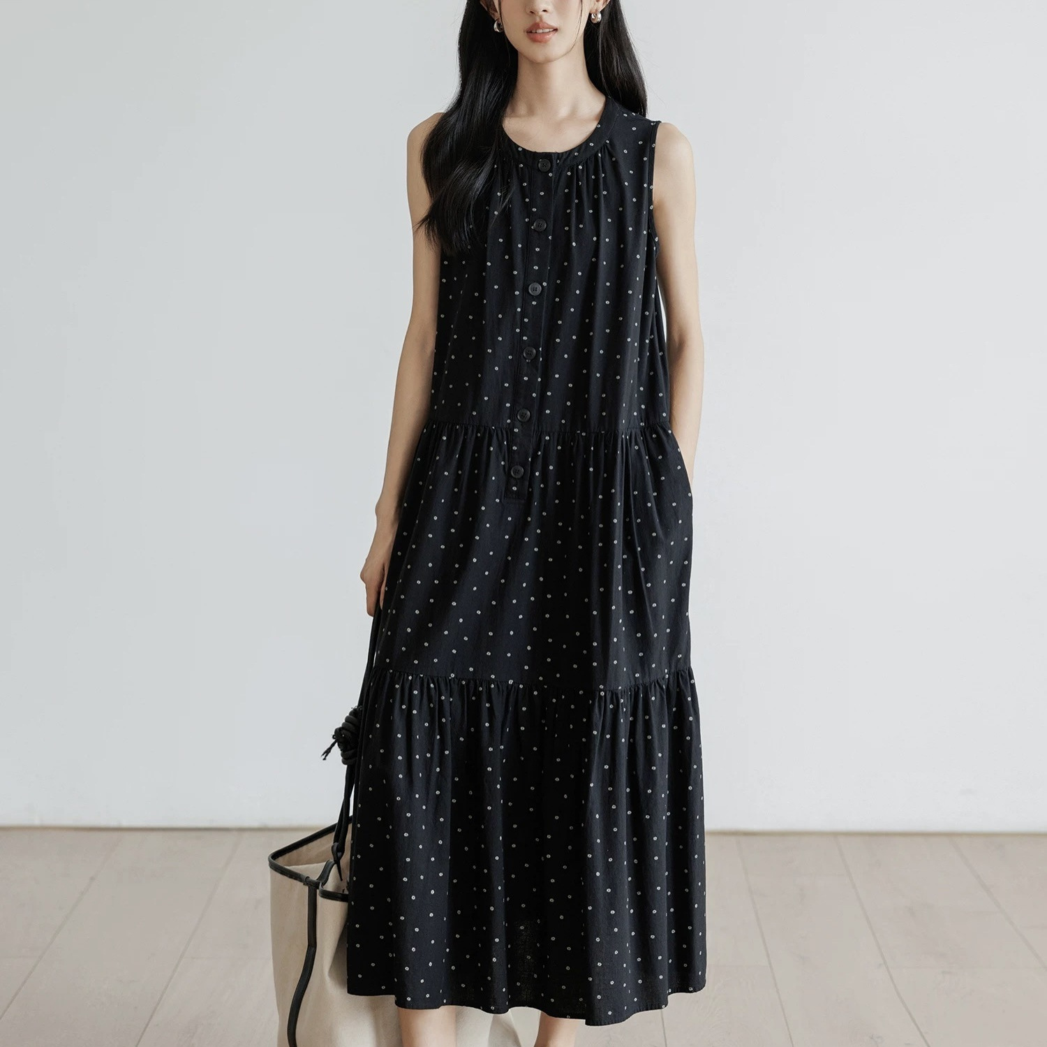 法式连衣裙女夏季2025新款无袖碎花宽松背心裙度假风桔梗长裙裙子