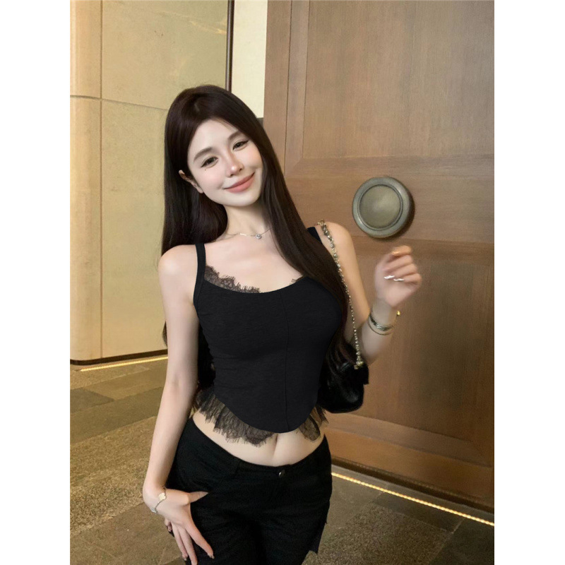 蕾丝拼接内搭吊带背心女设计感不规则显瘦短款上衣