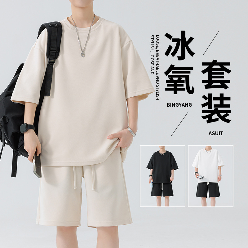 2025夏季新款男士圆领速干透气宽松休闲套装户外运动跑步服两件套