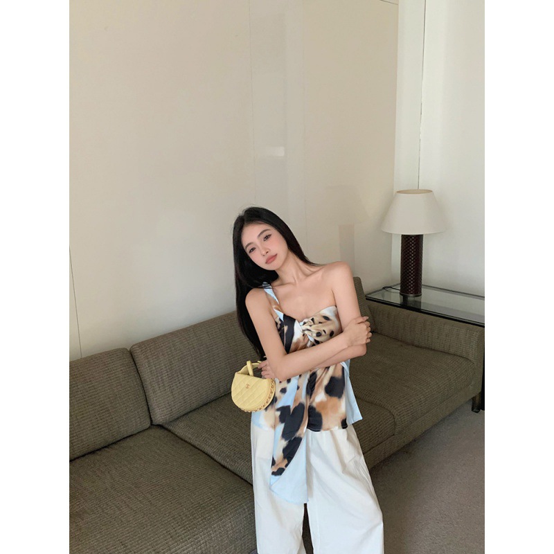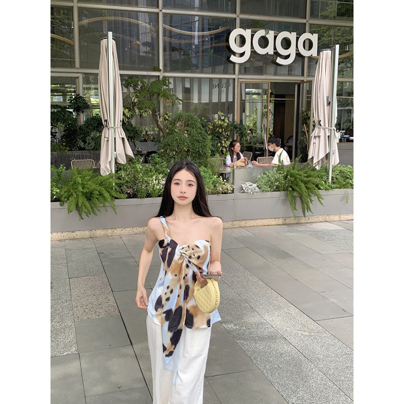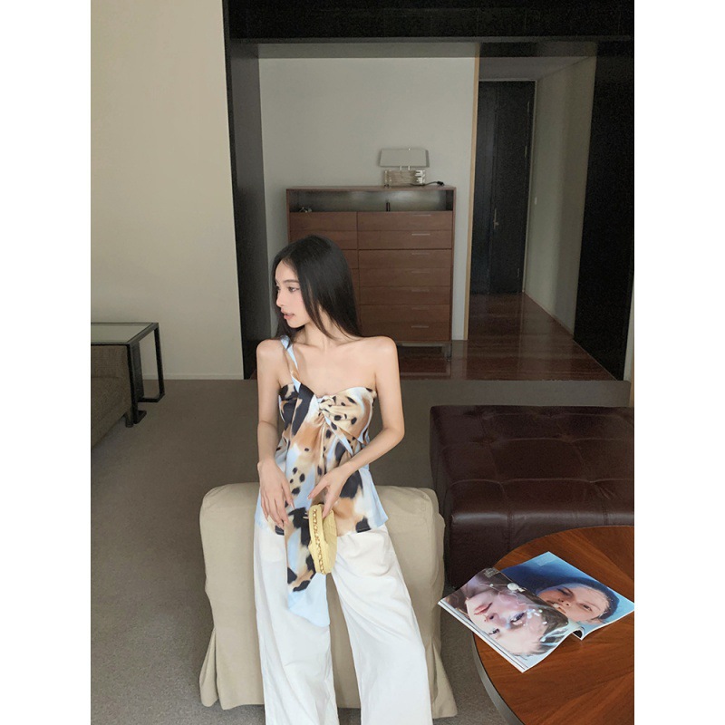 夏季新款纽结飘带气质上衣辣妹风抹胸吊带女上衣