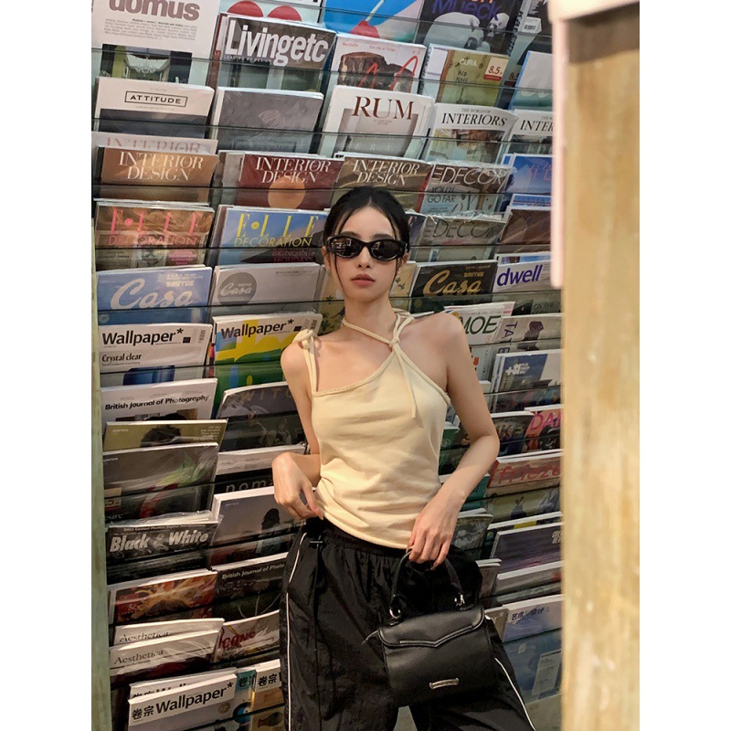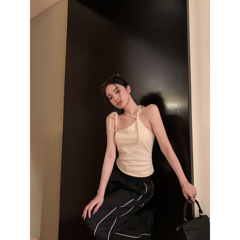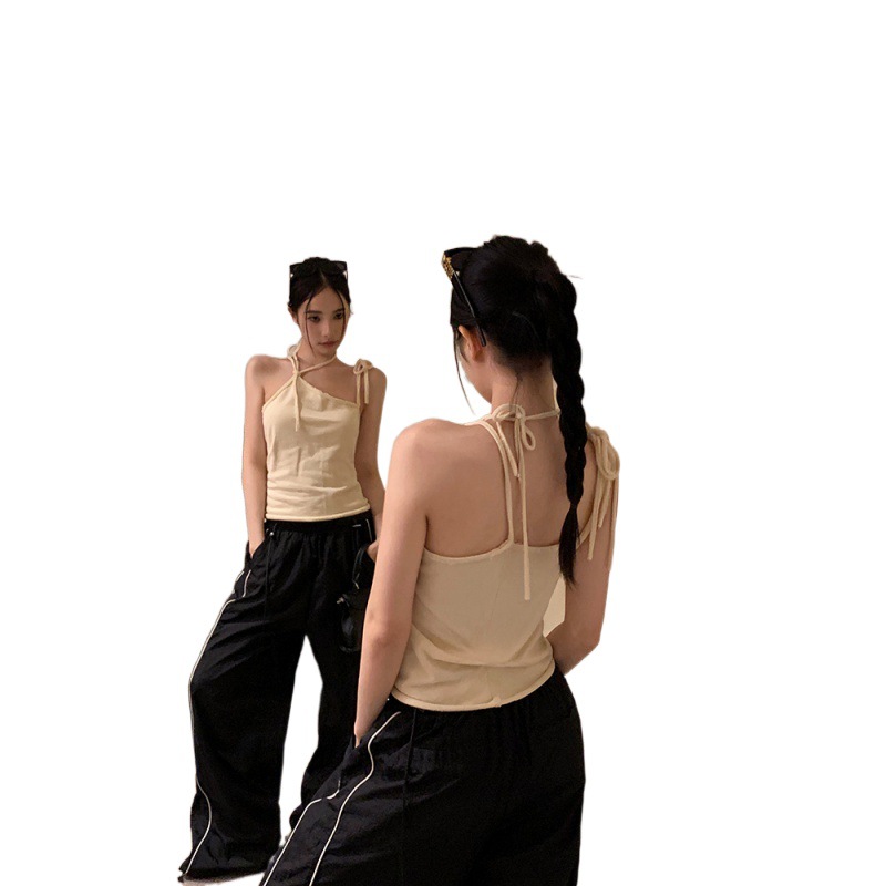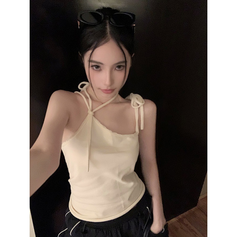 夏季新款性感辣妹随性绑带小心机须边不规则绑带背心女上衣