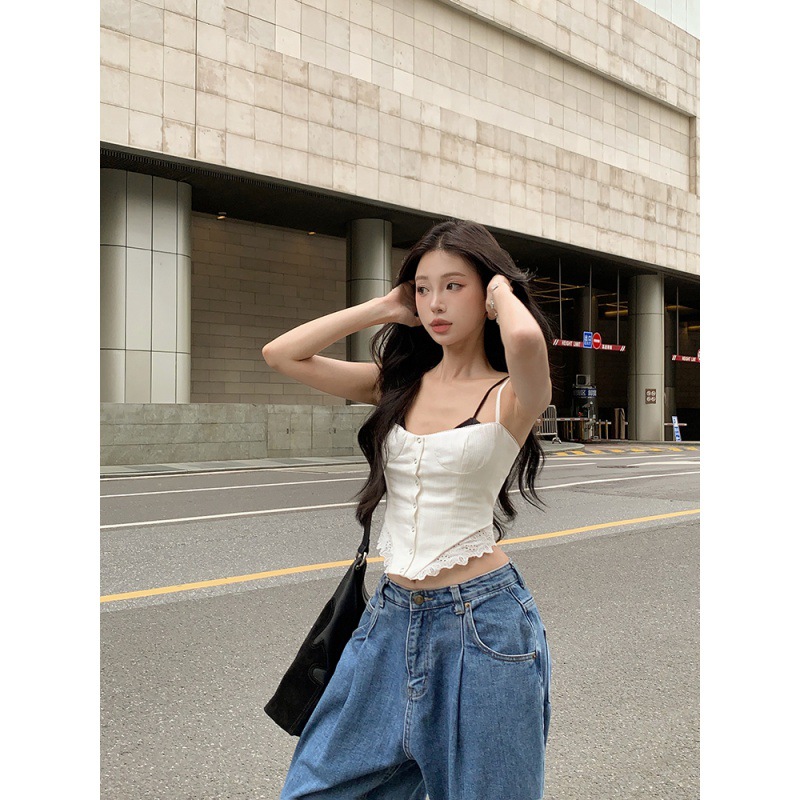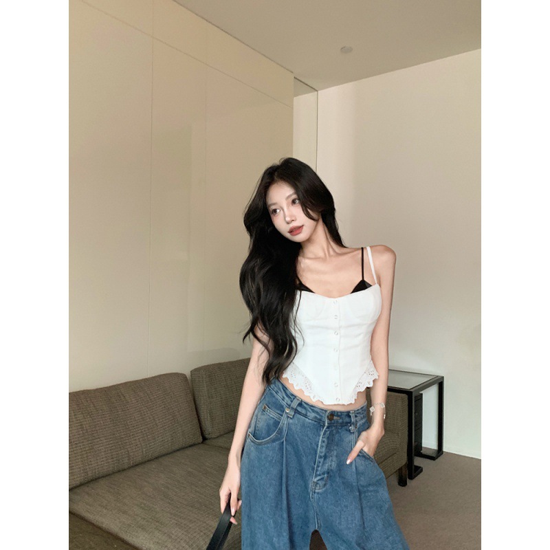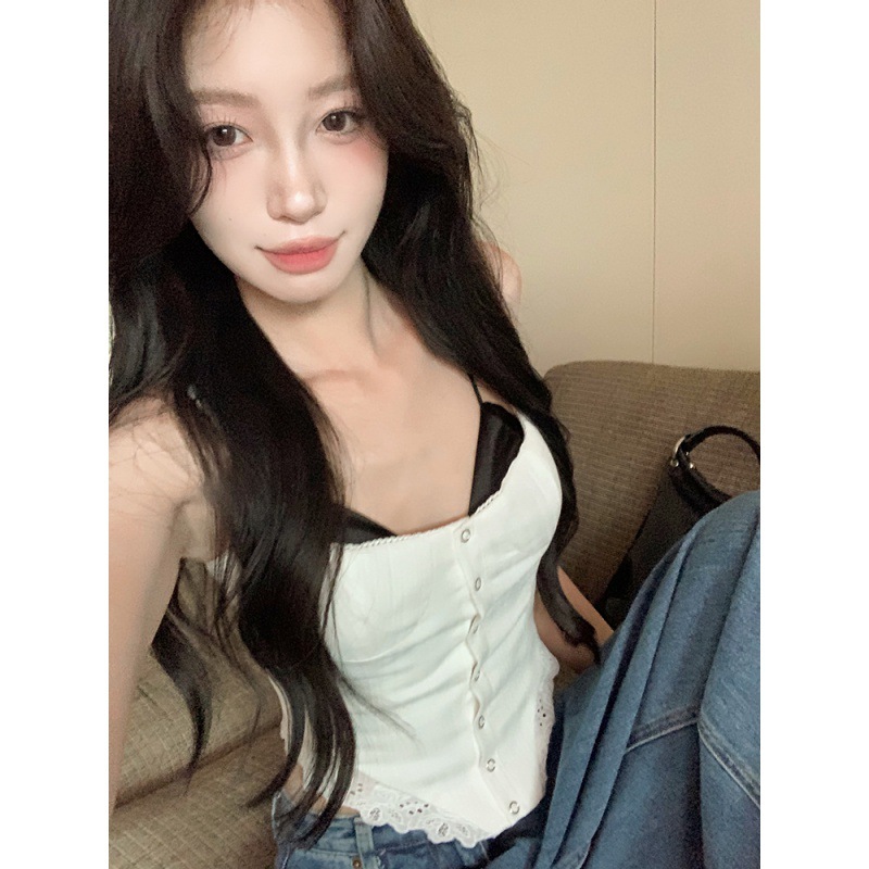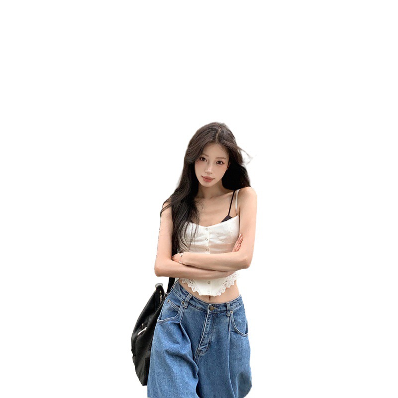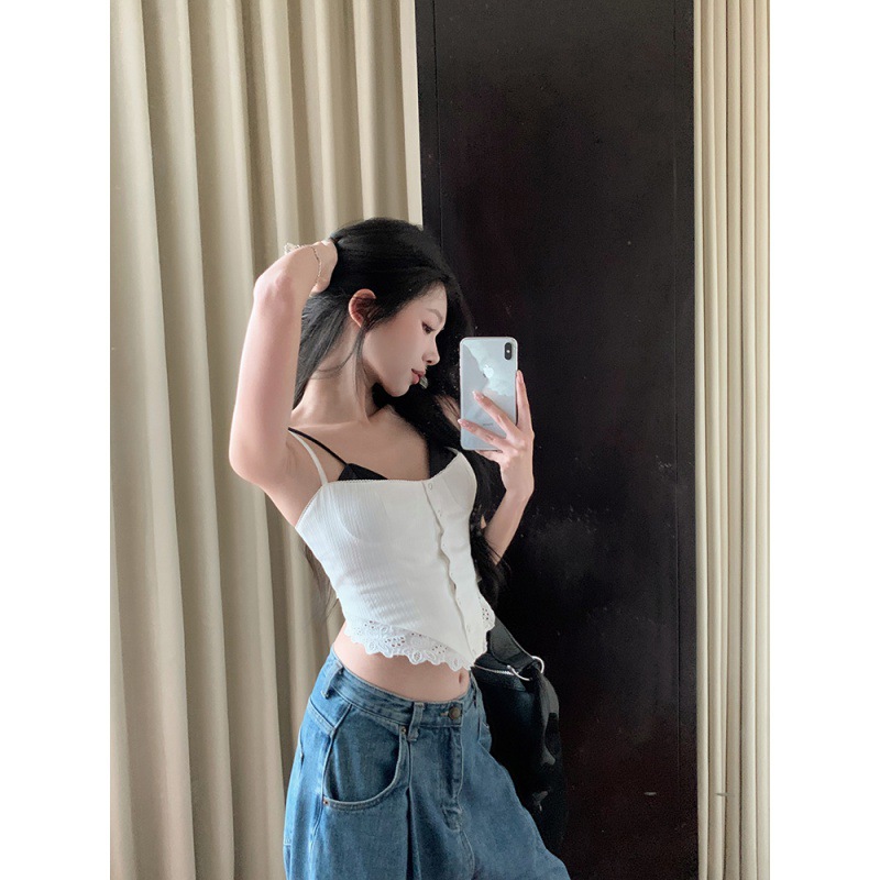 夏季新款纯欲性感辣妹白色抹胸吊带蕾丝花边显瘦上衣女