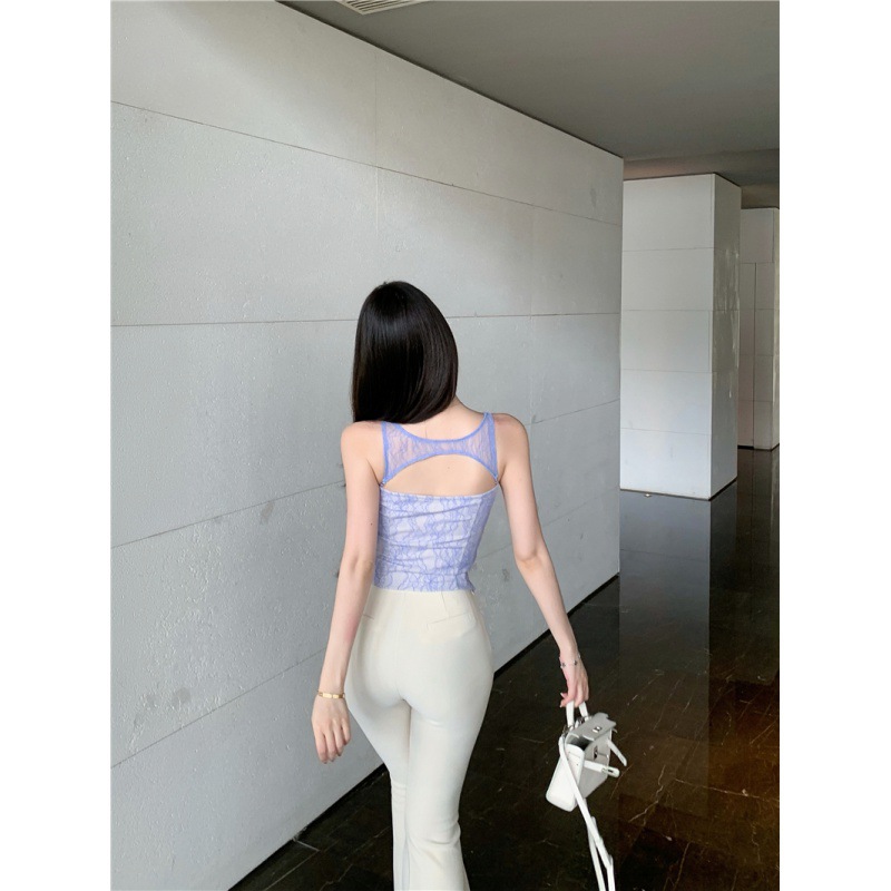 夏季新款纯欲辣妹性感蕾丝拼接吊带背心裹胸自带胸垫