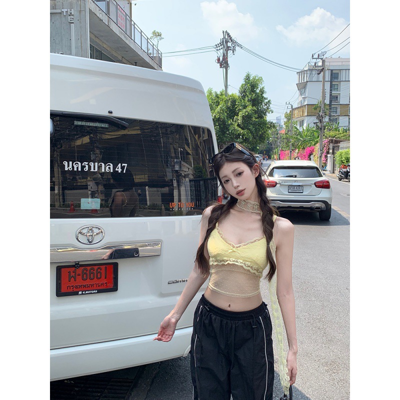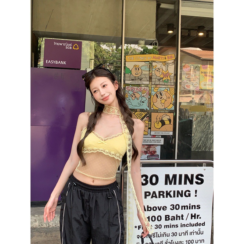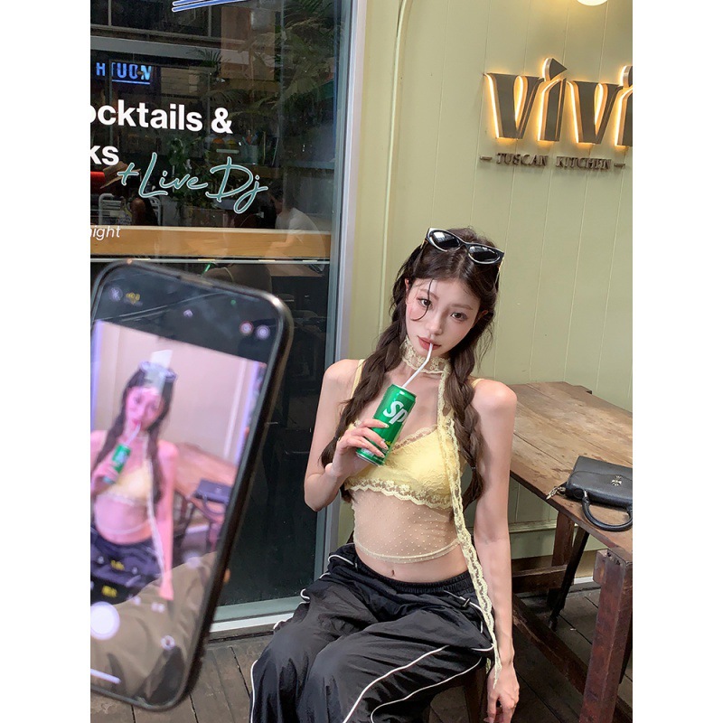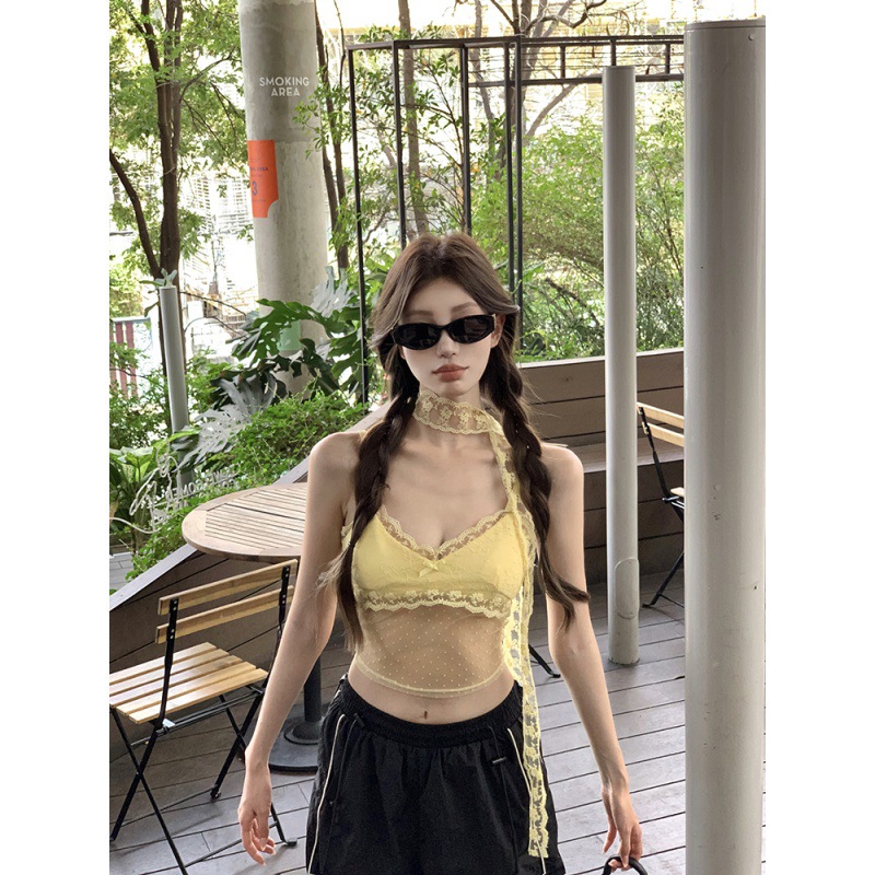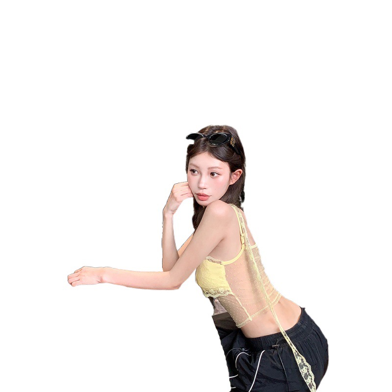 春夏新款甜辣蝴蝶结蕾丝吊带背心女纯欲波点显瘦上衣女