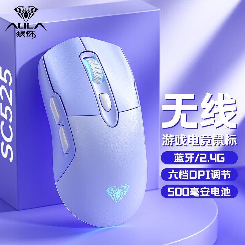 狼蛛(AULA)SC525无线鼠标 蓝牙鼠标 双模对称鼠标RGB灯效便携