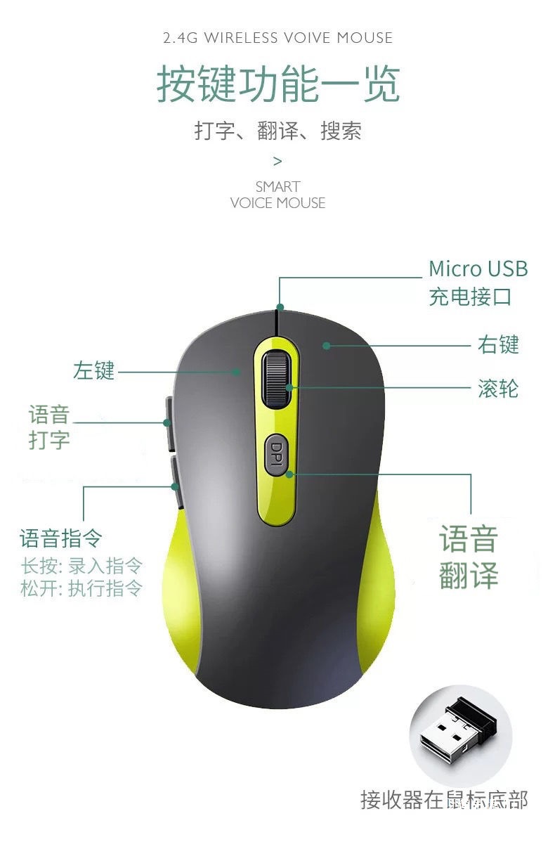 语音鼠标无线可充电声控识别打字翻译台式笔记本适用智能语音鼠标