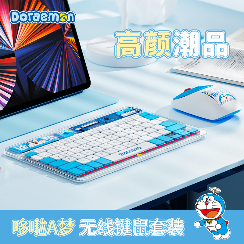 哆啦A梦无线键盘鼠标套装卡通笔记本平板电脑蓝牙七彩灯无线键盘