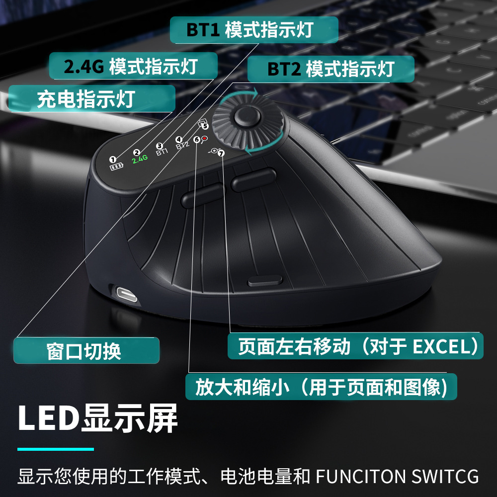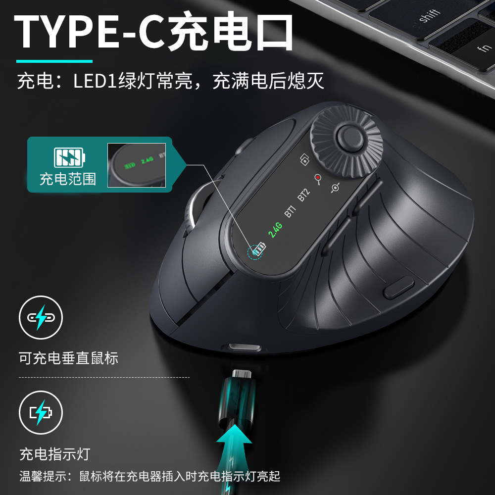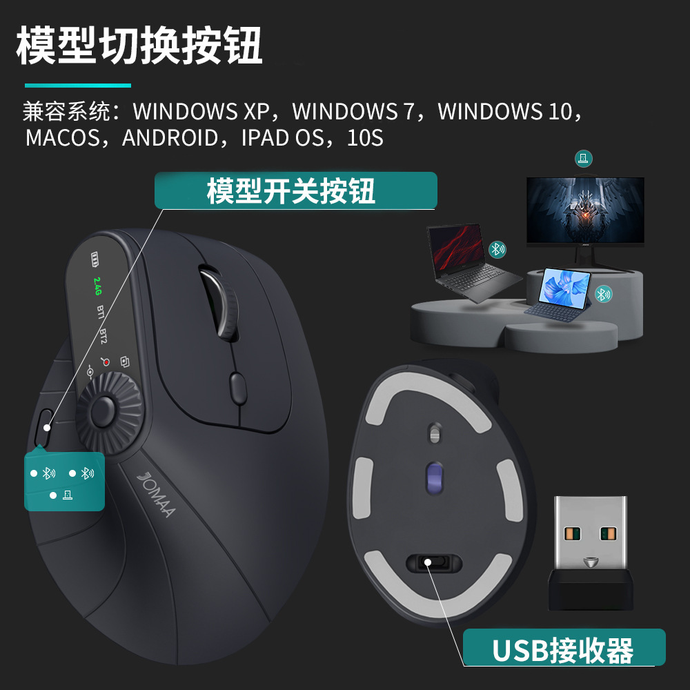 JOMAA 2.4G蓝牙无线垂直鼠标人体工学可充电多设备鼠标