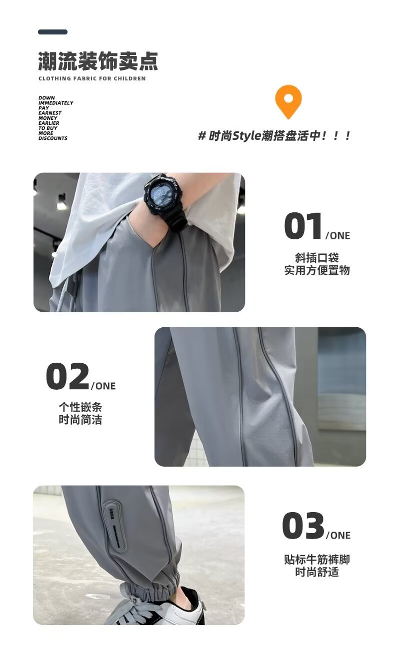 男童夏季冰丝防蚊裤新款儿童夏装中大童裤子帅气速干长裤