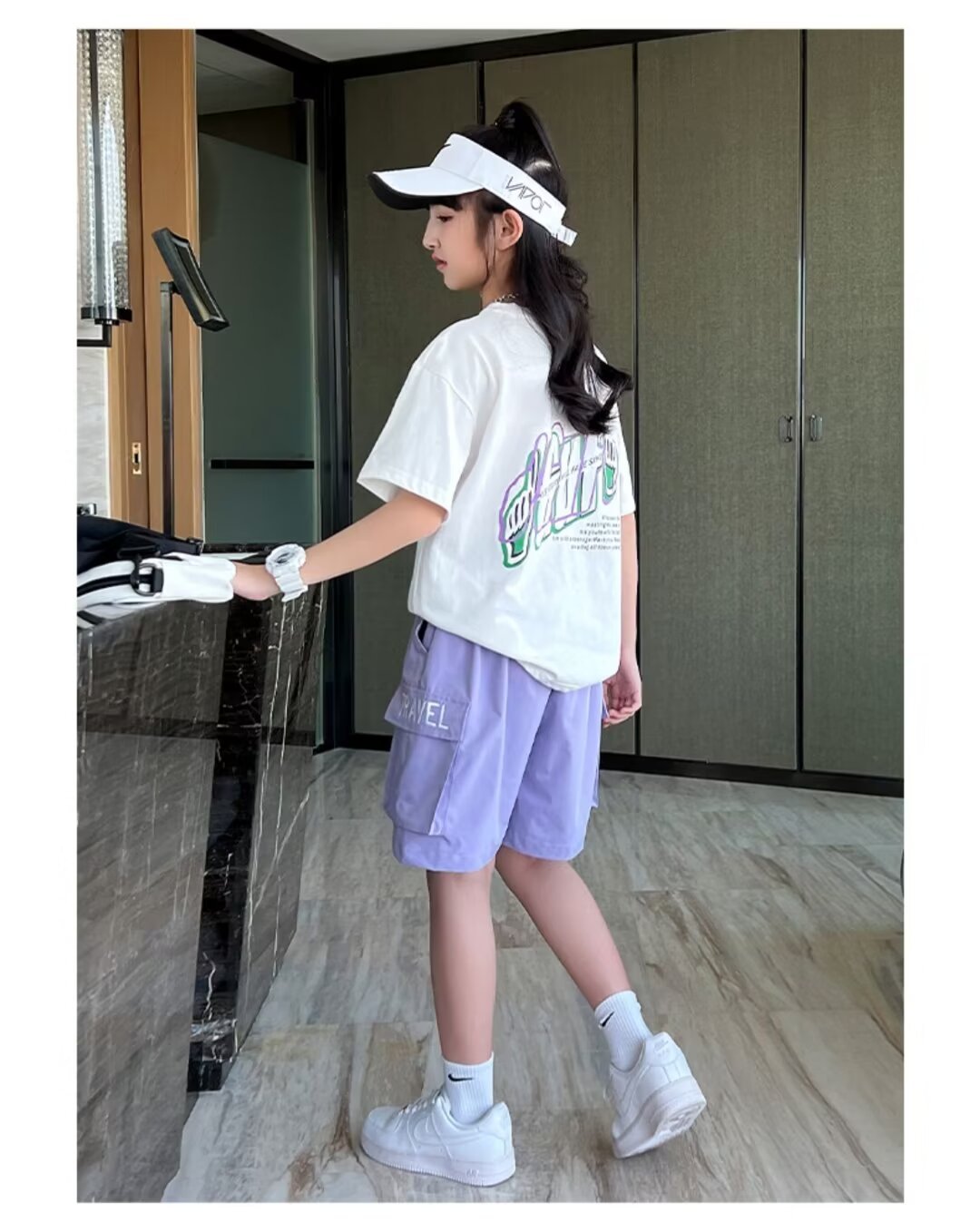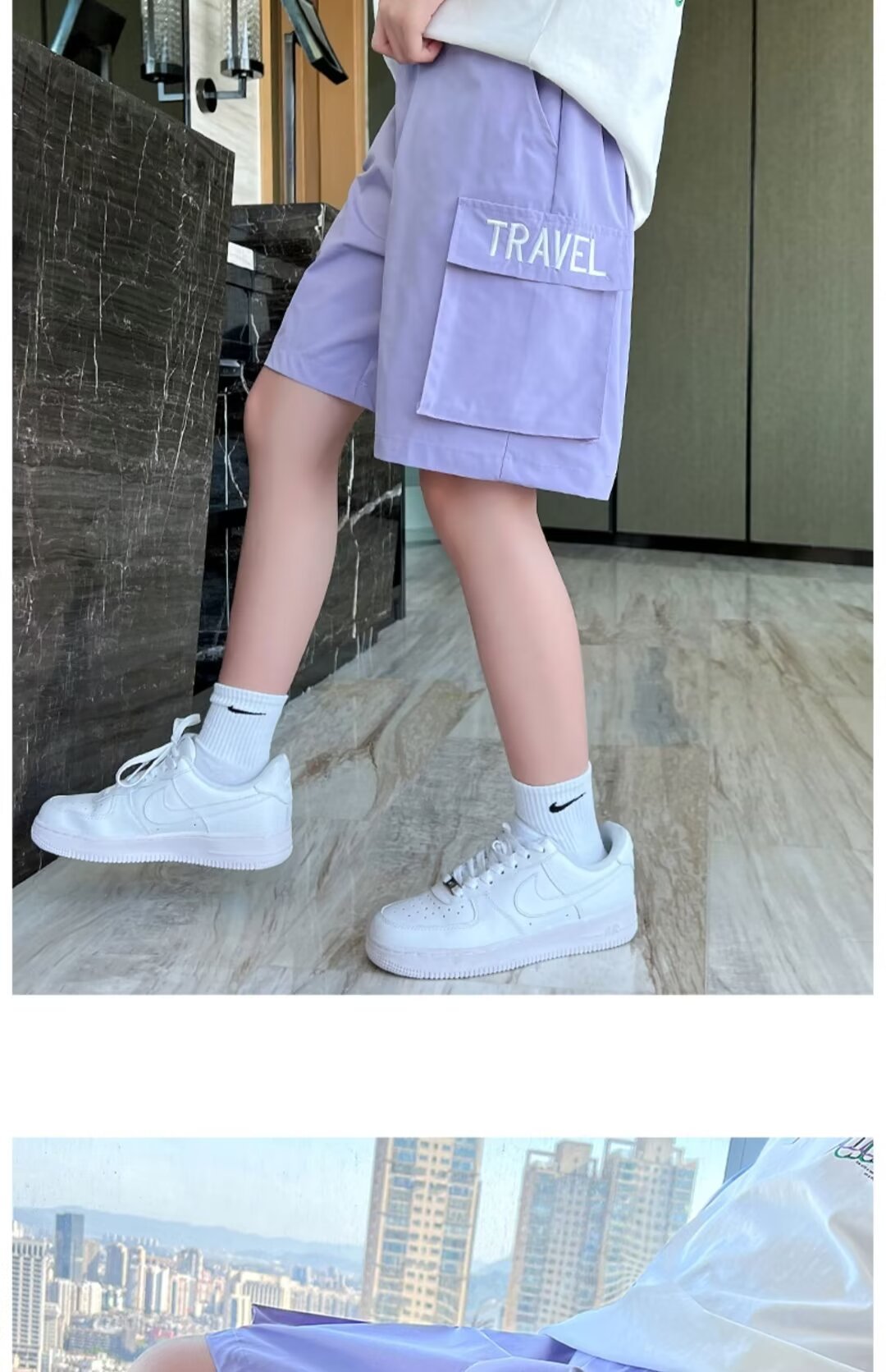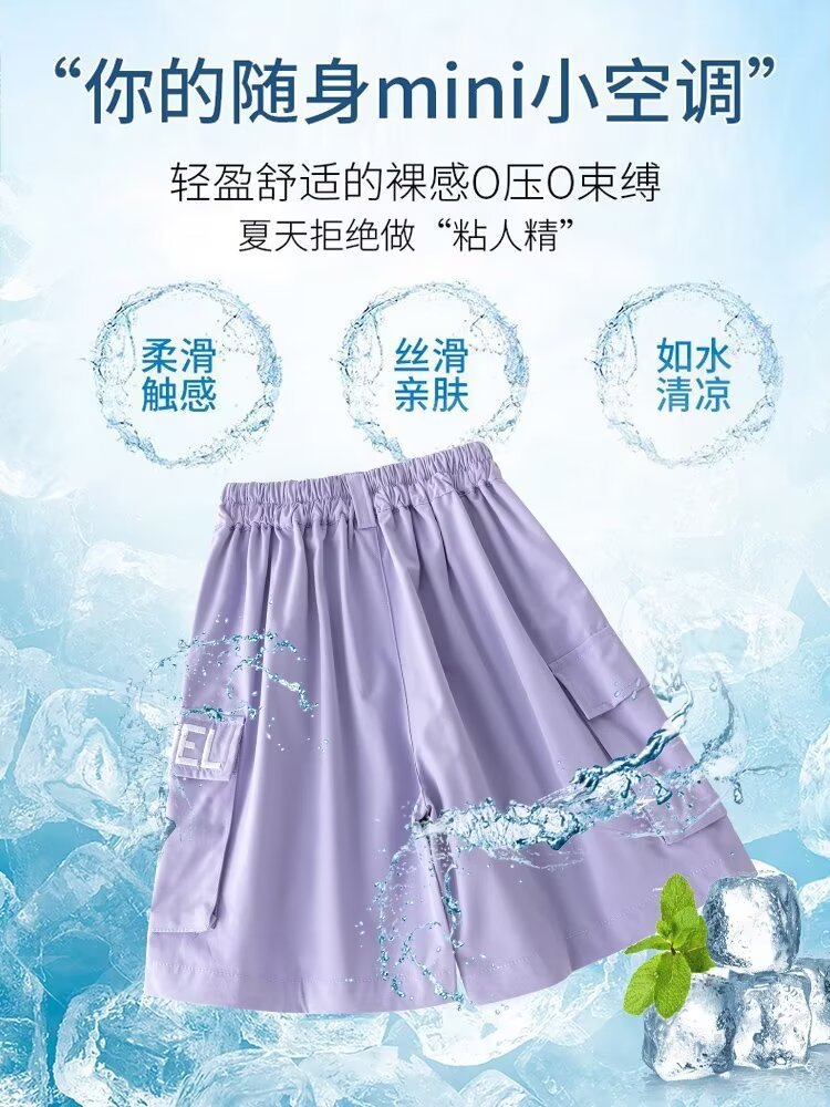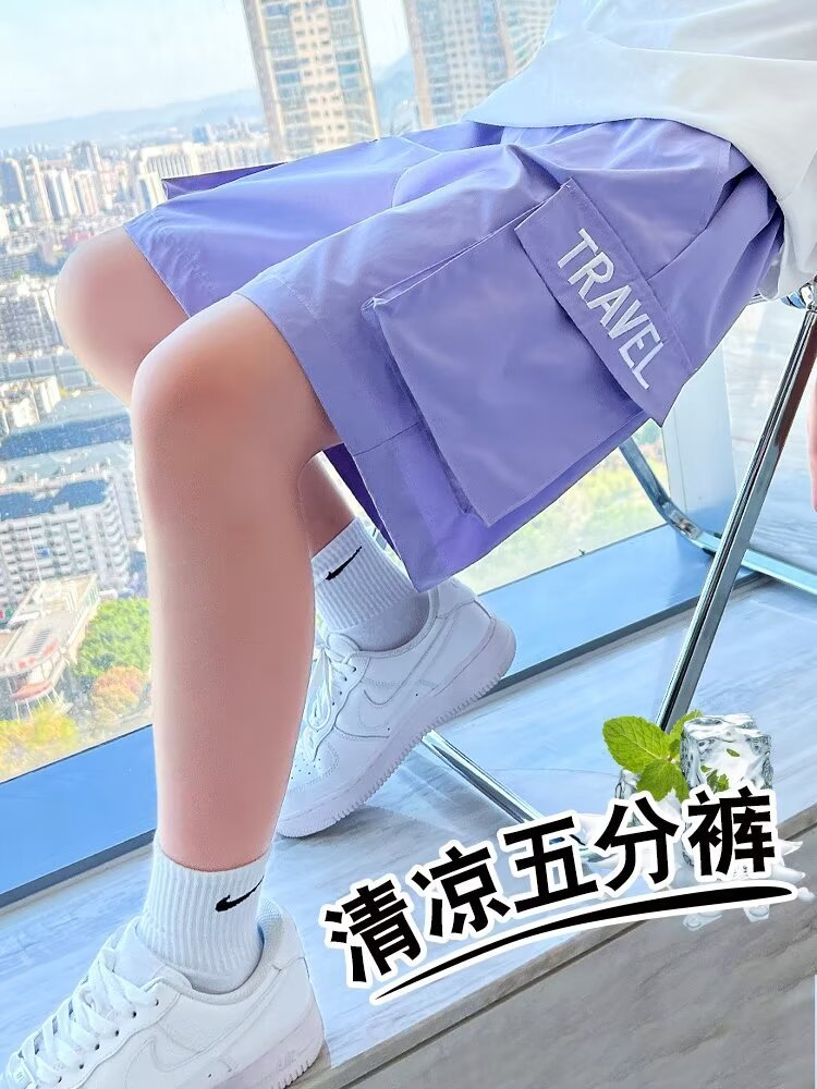 女童工装短裤儿童夏季外穿冰丝运动五分裤子男童女孩炸街夏装套装